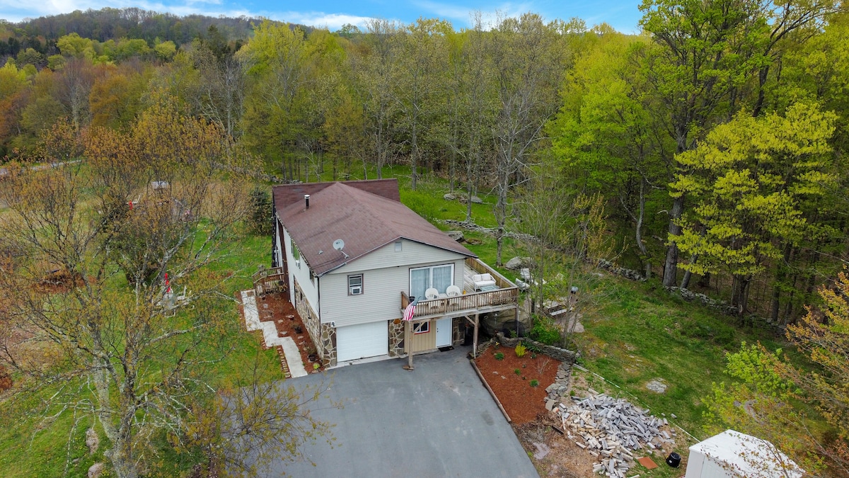 Escape to The Mountaintop Hideaway, located on top of a mountain in Honesdale, Pennsylvania. Enjoy the serenity of 8+ acres of sprawling meadows and distant valleys, perfect for gazing the unforgettable sunsets or starry night skies. Visit the Historic town of Honesdale for fine dining, craft beer, and unique shopping experiences, all just a short drive away. Lose yourself in the peace and quiet and forget your worries at The Mountaintop Hideaway.