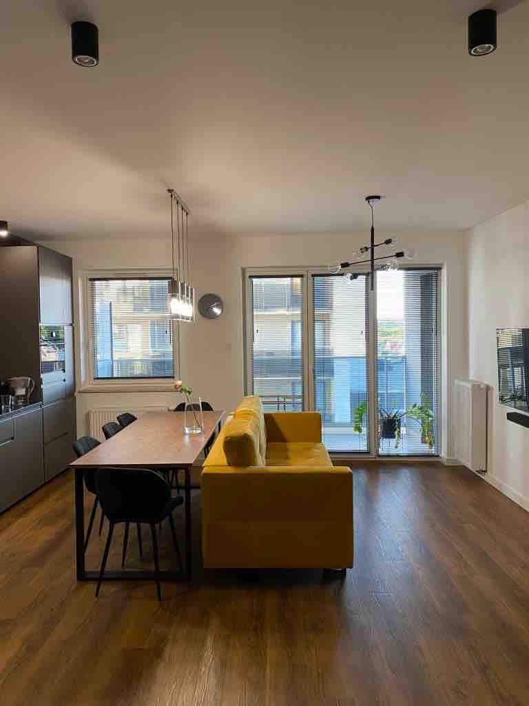 Apartment in a new block (2021),located close to the center (1 km)and the railway and bus station (1.3 km).Great location. Apartment with air conditioning. A space in the underground garage is available (for a fee). The 52 sqm apartment consists of a living room with a sofa bed, 2 bedrooms - one with a double bed, the other with a single bed and a desk, and a bathroom with a spacious shower and a washing machine. The offer is complemented by a large balcony overlooking the city panorama.