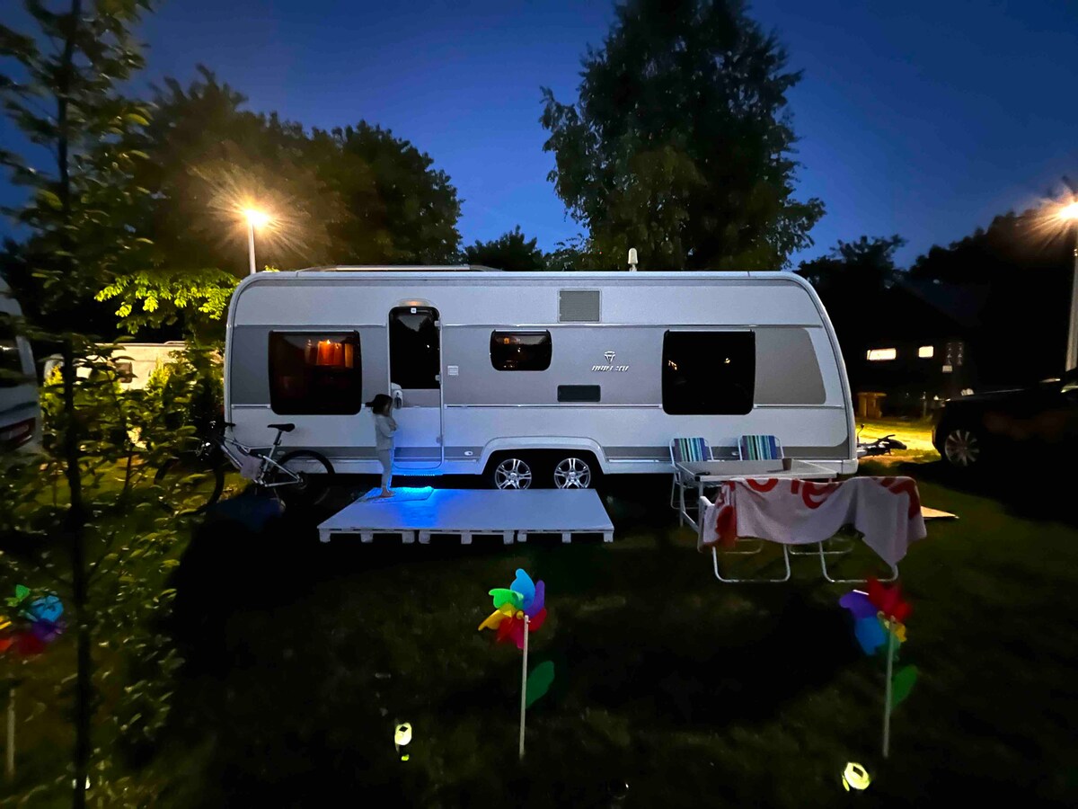 The trailer is located in a picturesque resort on Lake Białe Augustowskie. The trailer is a Mercedes among trailers: - beautifully finished - white leather - it has a bar, stove, microwave, TV, wifi, - double bed and bunk bed - we rent it for a maximum of 5 people - fresh bedding available in the trailer - guests can use our 2 mountain bikes And on the Camp additionally: - water skis - motorboats - a place to play badminton, volleyball, campfire, banya - restaurant