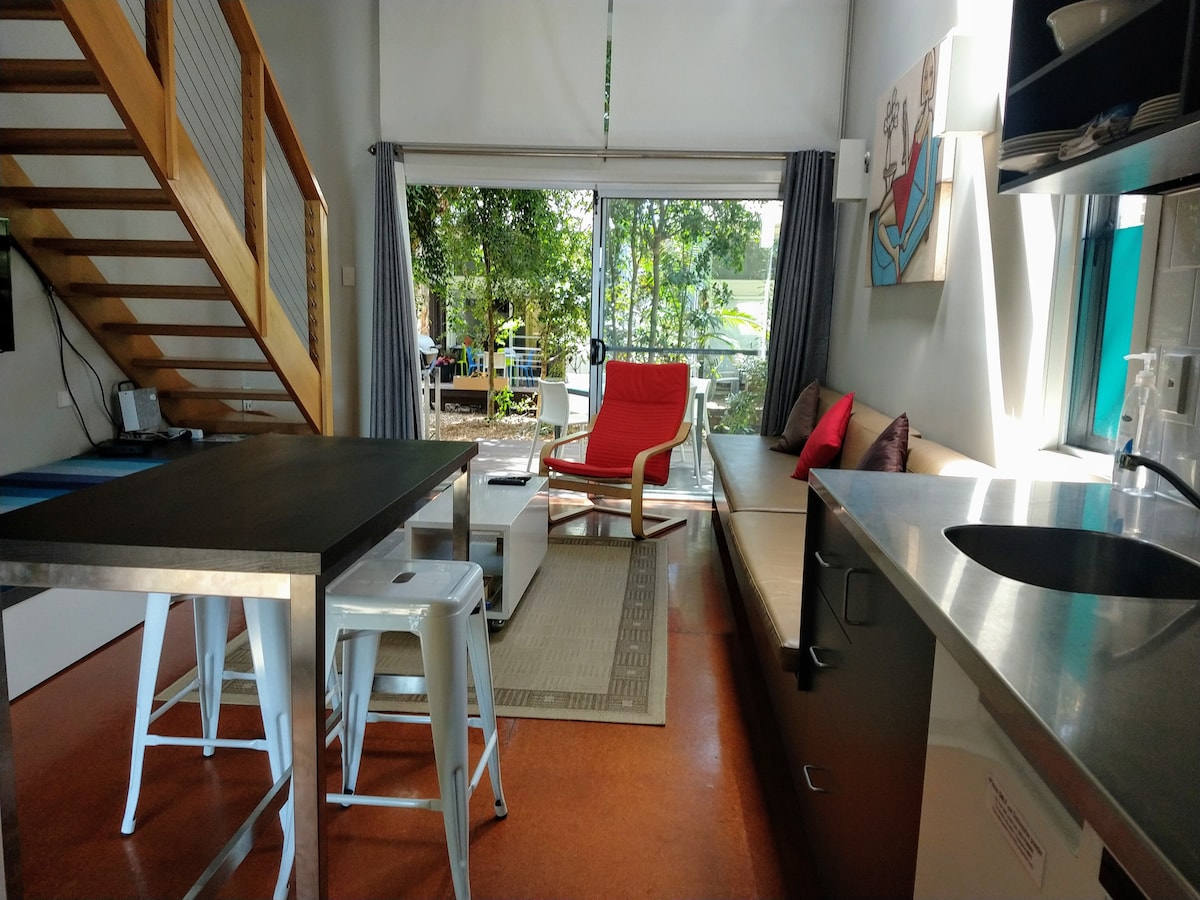 Welcome to our loft villa, 2 minutes walk to home beach with privacy and a native bush outlook. One of the only lofts in the resort with internet access (unlimited and fast). The space has everything you need for a fully relaxing and rejuvenating holiday - a cut above the rest. The stylish pool is seconds away as is a small gym. This is a great place for couples and families (with young kids). There is a roll away single bed in the cupboard, a portacot and Ikea high chair.