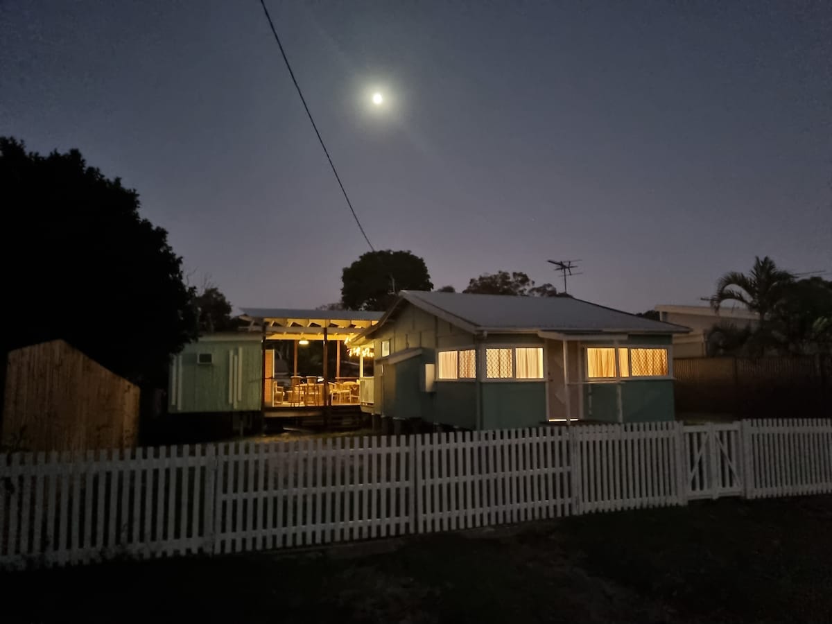This cosy iconic beach cottage is in walking distance to beaches, cafe's, headland walks & whale watch viewing towers. See whales, dolphins, turtles of many other types of marine life from only a minutes walk away . Other wildlife also frequent this area such as kangaroos, bandicoots, curlews & butcher birds that sing on the veranda. Fully airconditioned for those hot summer nights & plenty of ocean breezes around the outdoor bbq area, makes for a perfect relaxing holiday for the whole family.
