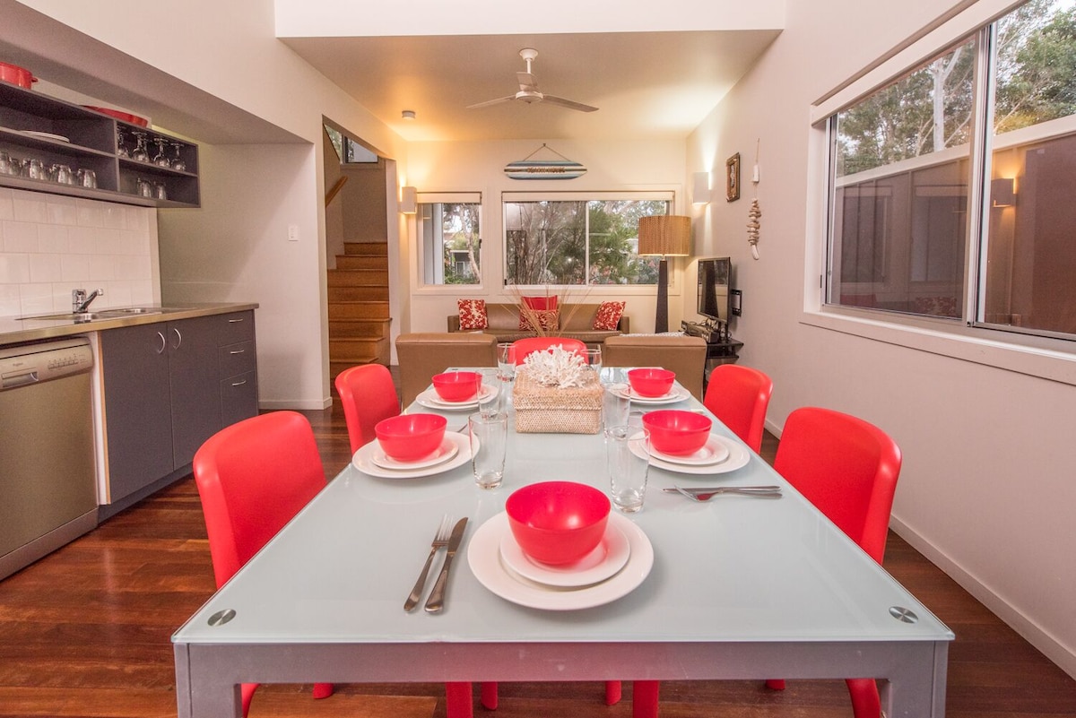 Welcome to our loft villa, 2 minutes walk to home beach with privacy and a native bush outlook. One of the only lofts in the resort with internet access (unlimited and fast). The space has everything you need for a fully relaxing and rejuvenating holiday - a cut above the rest. The stylish pool is seconds away as is a small gym. This is a great place for couples and families (with young kids). There is a roll away single bed in the cupboard, a portacot and Ikea high chair.