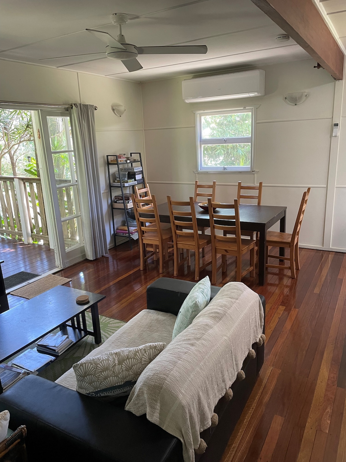Spacious, original beach shack in a central and walkable Point Lookout location. If you are after a simple island getaway, you will love it as much as we do! The shack is elevated, so catches a breeze. Large kitchen, living/dining with a separate study area. 2 spacious bedrooms with clean, comfy beds and quality linen. Includes Wi-fi, Netflix, Aircon. All linen and bath towels provided. A large fenced, grassy yard, very central and an easy walk to the headland whale watching spots + beach.