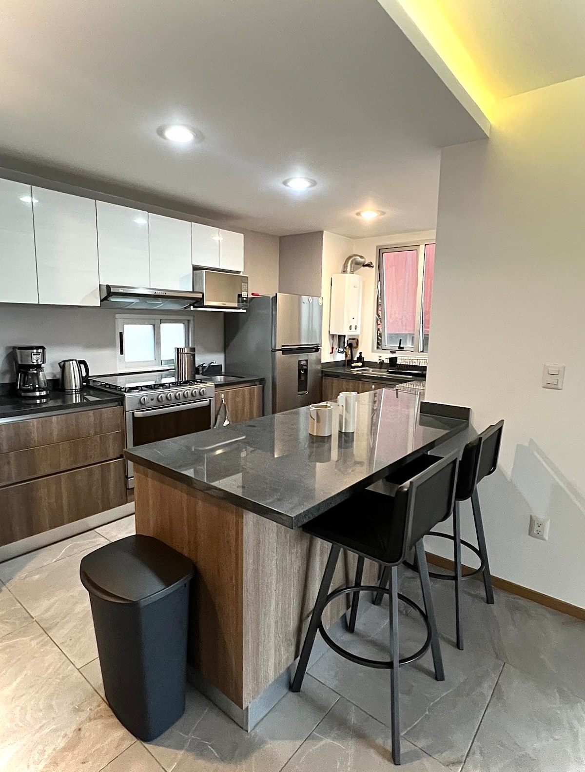Cozy high end apartment that fronts “PARQUE ESPAÑA” one of the biggest parks located in the heart of la CONDESA, 2 BDR in 2nd level, 2.5 Baths, Carrera Quartz Countertop, Huge private patio, Dish washer, Alcohol Fire Place, Laundry Room, high speed Wifi, Free Netflix on 4 smart TV’s Amenities are a DEAL MAKER! pool, gym, valet parking, Roof top Bistro (not included) Security guards 24h.