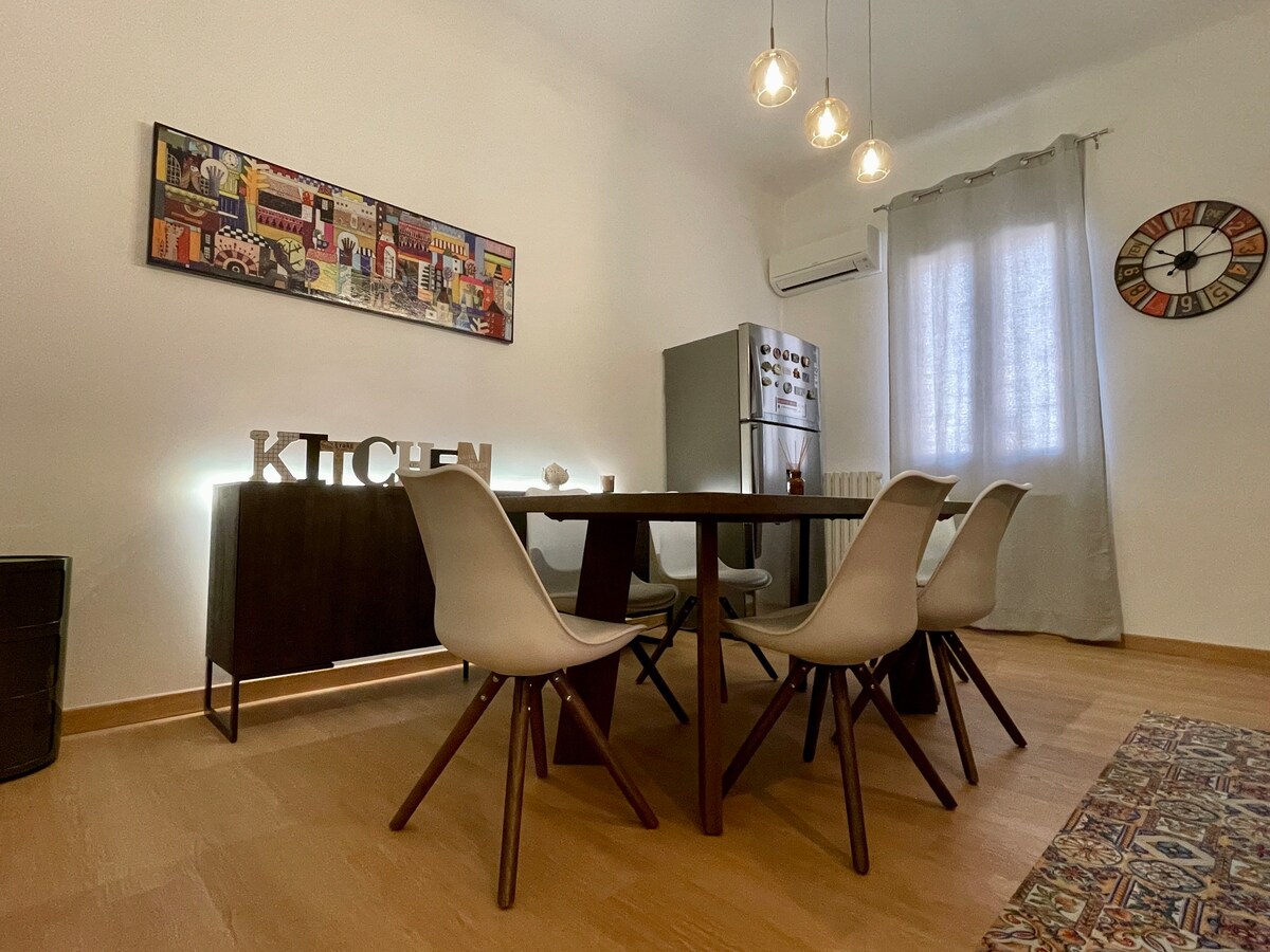 L'appartamento di 45mq, appena ristrutturato, e' dotato di ogni comfort, accogliente ed elegante; l'arredamento e' completamente nuovo per un soggiorno di alto livello. L'alloggio, interamente ed esclusivamente fruibile dagli ospiti in ogni sua parte, e' situato al 1/o piano di un tranquillo condominio. L'host, che vive e lavora a pochi minuti dall'appartamento, e' a disposizione dell'ospite in caso di necessita'. La casa si trova in centro citta', in una zona silenziosa e residenziale.
