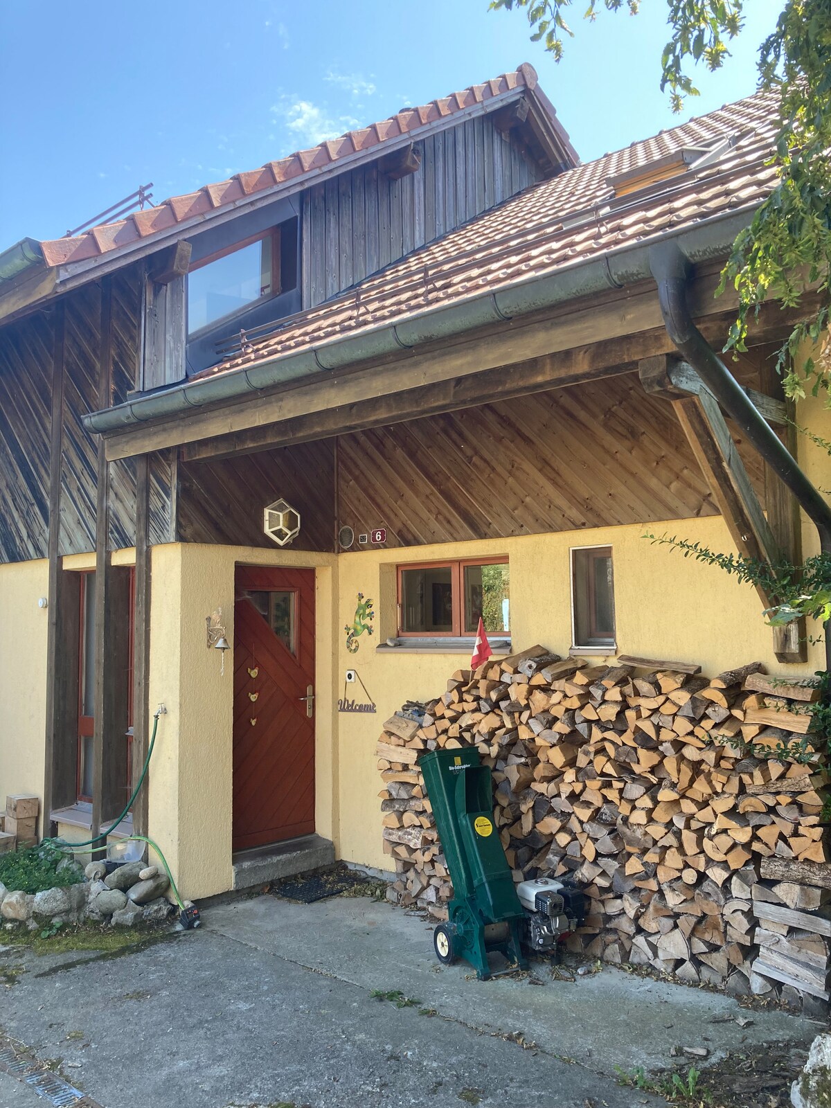 Apartment in a farmhouse, in the heart of Gros-de-Vaud, an agricultural region near Lausanne, an hour from the capital Bern. In a small village, with lots of hiking or mountain biking opportunities. Located between Lausanne and Yverdon, the region offers many tourist opportunities: Lake Geneva and Lake Neuchâtel, museums, etc. 1 hour from Villars or Portes du Soleil ski resorts. 1 hour from Geneva or Gruyère. 2 night minimum booking.