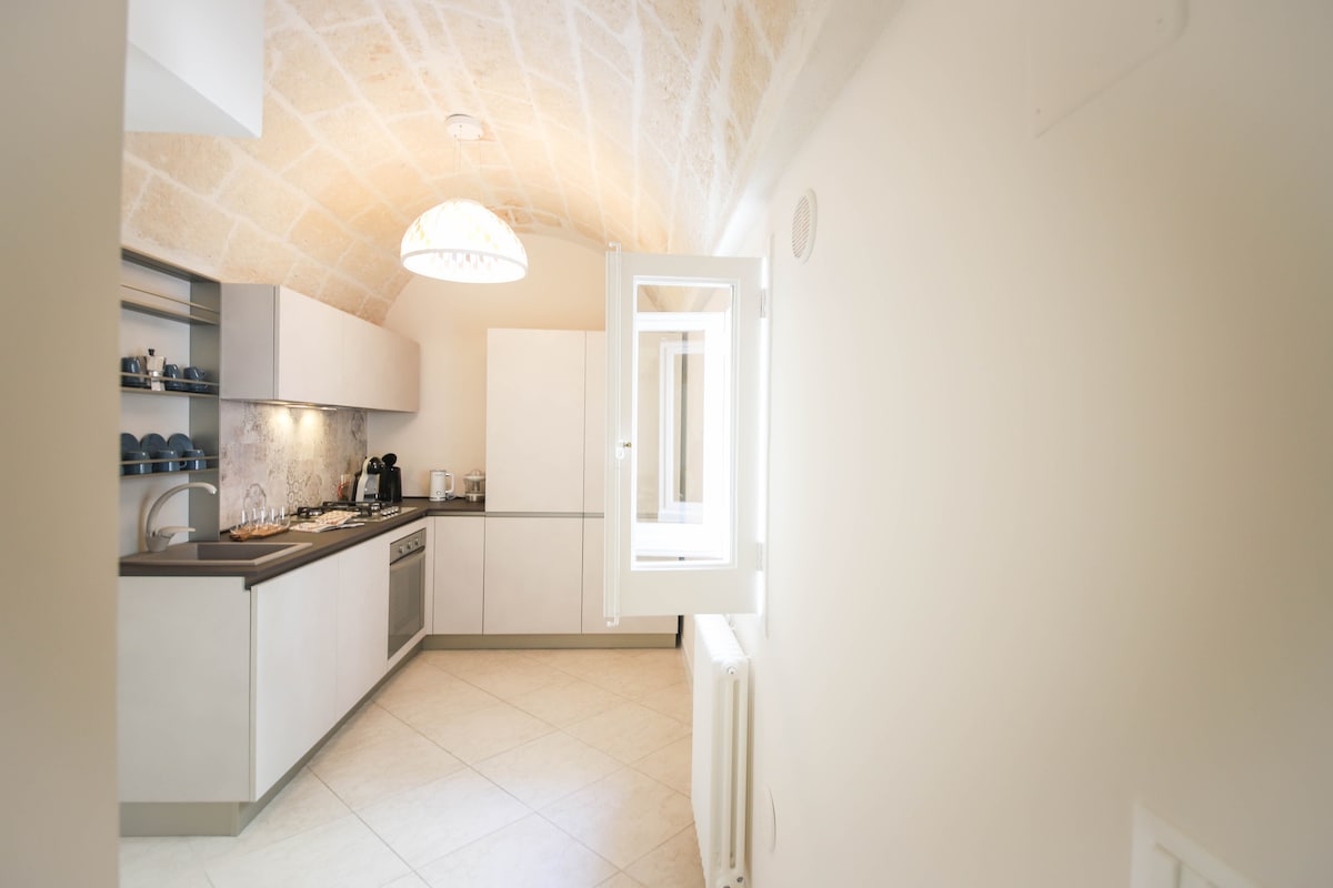 "GIADA" is an elegant and refined apartment located in an ancient building, furnished with style and functionality to welcome travelers from all over the world. Discover the beating heart of Puglia, located in a privileged position just a few steps away from the breathtaking beaches of Monopoli and only 1 minute from the suggestive Fishermen's Port and the cultural area of Carlo V Castle.
