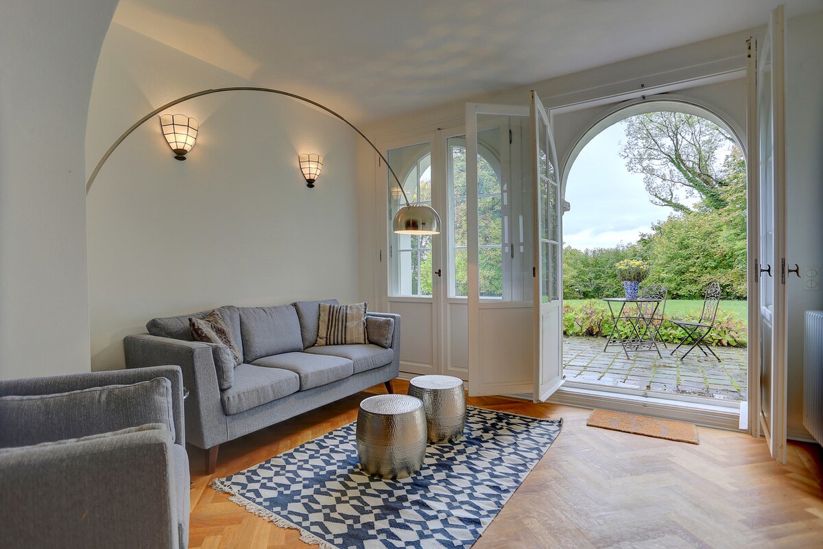 Stylish and modern apartment (110sqm) in historic Villa Romenthal in beautiful nature surrounding. Close to the beautiful town center of Diessen and only 900 m to lake Ammersee. Apartment with own terrace and garden access.