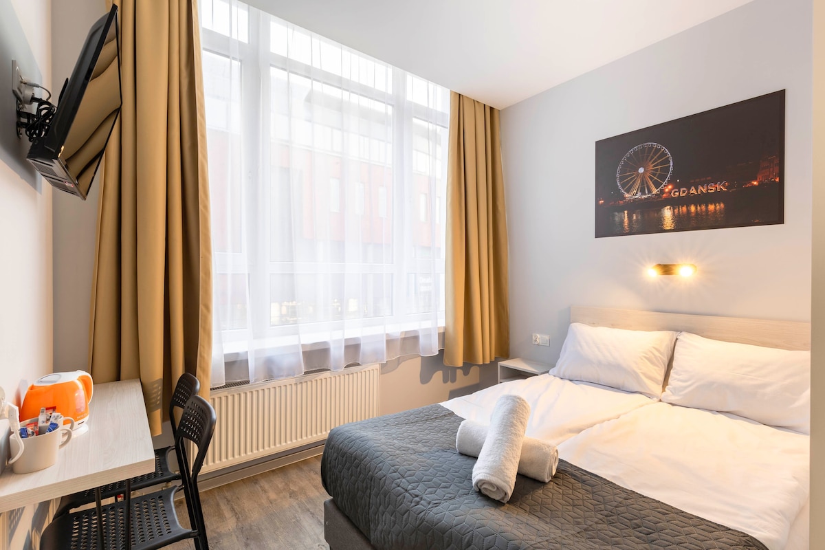 Basic Double Room with a 140 cm wide queen bed. Amenities in the facility: - Air-conditioned rooms and breakfast zone - WiFi - Elevator - The rooms are equipped with electronic locks - Taking care of the guest during their stay - Iron and ironing board - Free access to coffee, tea and homemade cake in the afternoons Additional services: Breakfast - 55 PLN/day/person Parking - PLN 50/day (earlier reservation required)