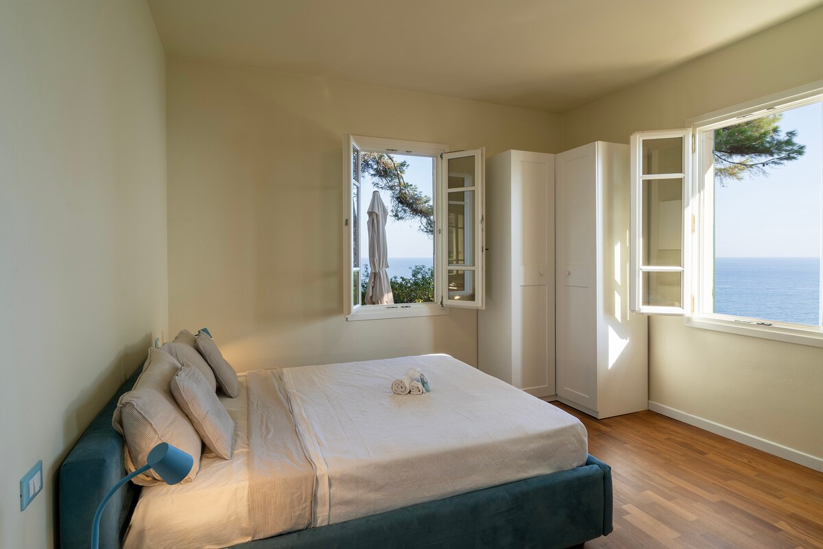 ->ideal for a couple and/or for working remotely with a sea view -bed and desk with wheels, you can move them around as you like - Beaches and parking lots 10 minutes away on foot - windows with blackout curtains -small terrace - 55" smart TV + cable + speaker + wifi -Workout equipment available - French bed 140x190 - Adjustable perimeter lights - dishwasher, washing machine - sheets, towels, soaps, toilet paper, oil, salt and pepper
