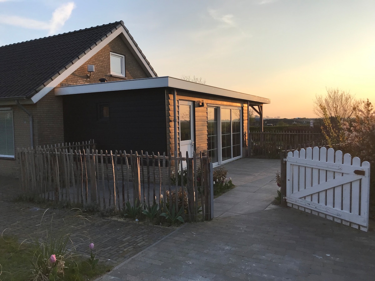 studio duinhuis ...the specially designed wooden house with fireplace is located on the hill opposite the Bad Paviljoen, 100 m from the entrance to the beach! It is my life's dream to live with a small studio by the sea and to welcome people to the guest house in the garden. The typical Zeeland house opens its windows to the outside on a sunny wooden terrace, the sea can be heard here. A cozy sleeping gallery makes the house special, the private sauna can be booked spontaneously!