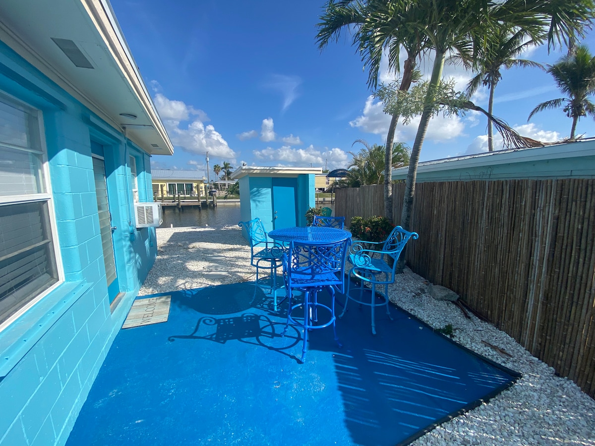 Matlacha is for LOVERS! Lovers of relaxation, fishing, art, friends, social scenes and enjoying Life in a beautiful location ON THE WATER! Matlacha had damage from Ian. Our new home - none. You can still walk to great restaurants, shops and the fishing bridge. Enjoy the water in Matlacha & the Barrier Islands. Use our 1 person kayak for fun or fishing from our 8'X22' FUN & SUN deck docked in the back canal with picnic table & loungers. Relax, sun, grill and fish.