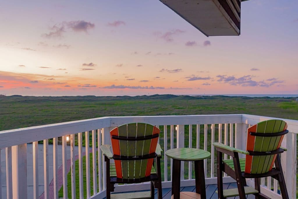 Imagine stepping onto your spacious balcony and being greeted by the breathtaking view of the Gulf! Sip your morning coffee while watching the sunrise. Spread out with your family and enjoy a big breakfast to fuel your beach day ahead! The large deck, approximately 300 sf, is accessible from both bedrooms as well as the great room. With unnobstructed views of the ocean beyond the grass field, you'll feel as though you're alone on a secluded island. It's truly a visual treat!