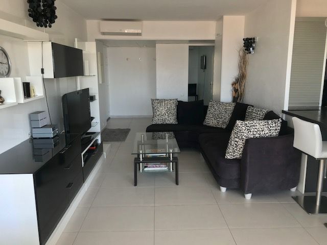 2-room apartment, completely renovated, living-dining room with a sofa bed for 2, a bedroom with a large bed also for 2 people, shower room, separate toilet, fully equipped kitchen: washing machine, dishwasher... A large terrace overlooking the port of Golfe-Juan. Lift / Elevator Large underground parking Secure location for bikes Shops and restaurants, beaches within walking distance. Very quiet building facing the sea, pool in the condominium.