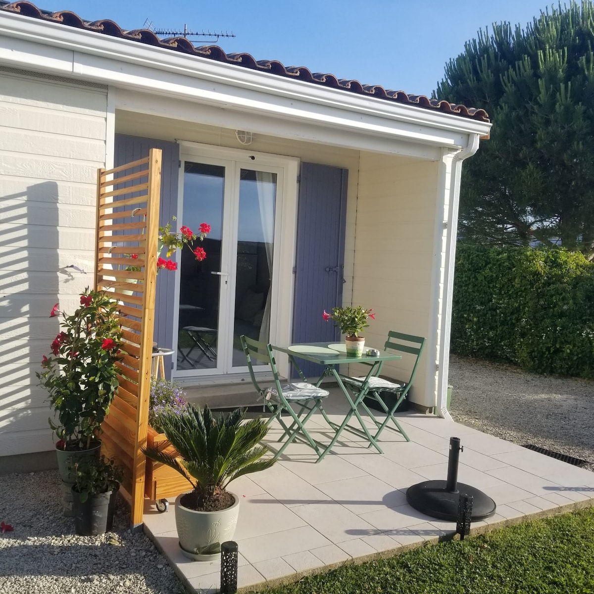 33 m2 accommodation with 9 m2 terrace, redesigned in 2024 to ensure the comfort, autonomy and tranquility of guests. Located in a quiet area of an oyster village, close to the sea, shops and markets, it will be the perfect base for your activities and visits. Village facing Fouras, Île-d'Aix, Île Madame, Île d'Oléron. Supervised beach (1 km) Birdwatching in the Moëze reserve. Many sites to visit in Rochefort and its surroundings.