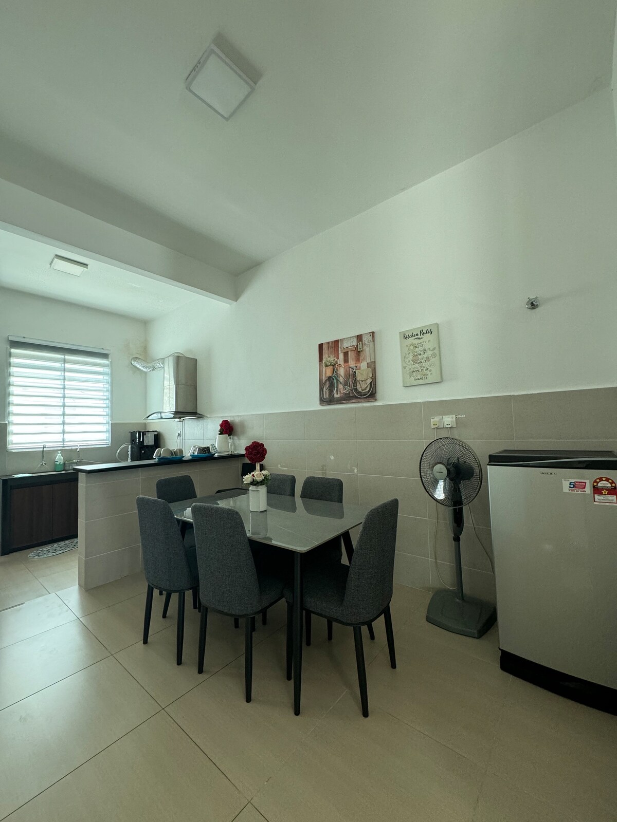 Located at Bandar Sri Sendayan which is a strategic location and just next to Seremban 2 with 5.9km to Mydin Hypermarket Seremban 2, 7.4km to Jusco Seremban 2, 13.7km to Palm Mall. This is an end-lot unit with more spaces and suitable for any many kind of occasion such as Wedding house/ accommodation, Pre-Wedding Function, Family trip, Team Building, BBQ and etc. Total 4 bedrooms with 4 queen bed, 2 single bed, 4 single mattress, 1 double air bed, 1 sofa bed which is FOC to use.