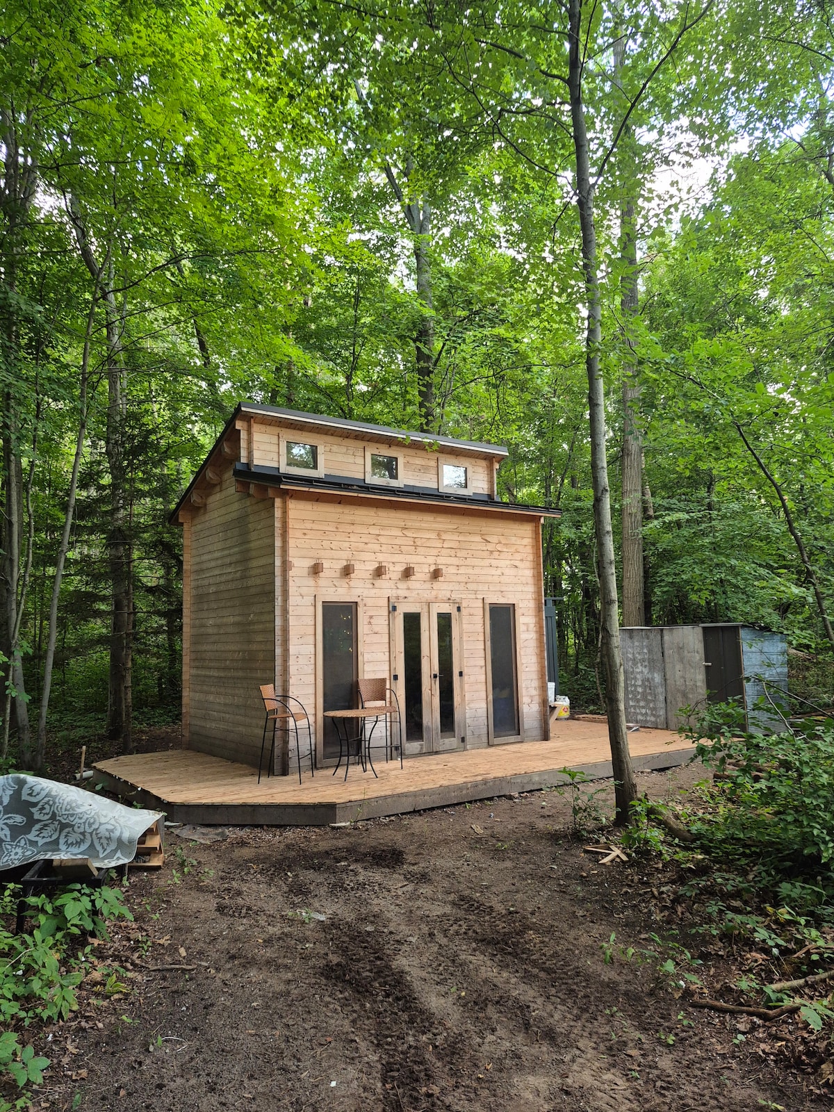 Welcome to the Chakra Shack. A quaint and simple camping getaway off highway 3 (15 minutes from Blenheim, Ontario) intended to allow you a moment to realign with nature, and disconnect from the rest. A small 100sq ft cabin & outhouse, situated on 4 acres of wooded property. You are steps away from a raised overview of lake erie. The sounds of the waves accompany you in immersing yourself in the present moment, and create a wholesome and charming camping experience.