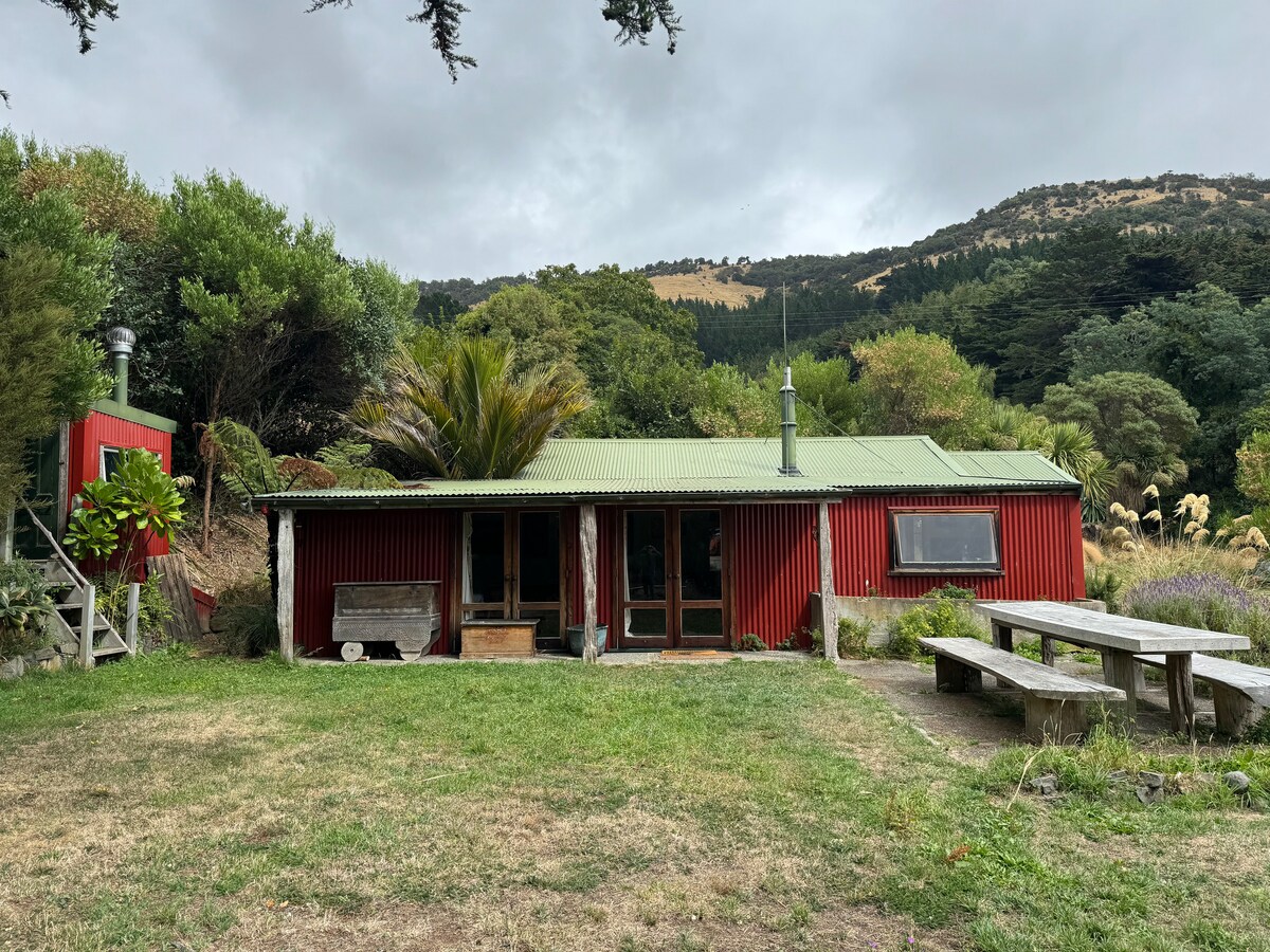 Rustic Cabin nestled in Pigeon Bay. Unique funky vibe with artistic décor. Queen bed, wood burner, retro games and books, table and chairs. Little kitchenette with beautiful spring water and gas cooking outside under veranda. Sunny couch on outdoor deck. Super funky toilet block and spacious shower room just a short walk away on lush lawns. Gorgeous rural outlook. Ocean 1min drive away. Akaroa 20mins. No WiFi but excellent coverage on Spark network, average on Vodafone.