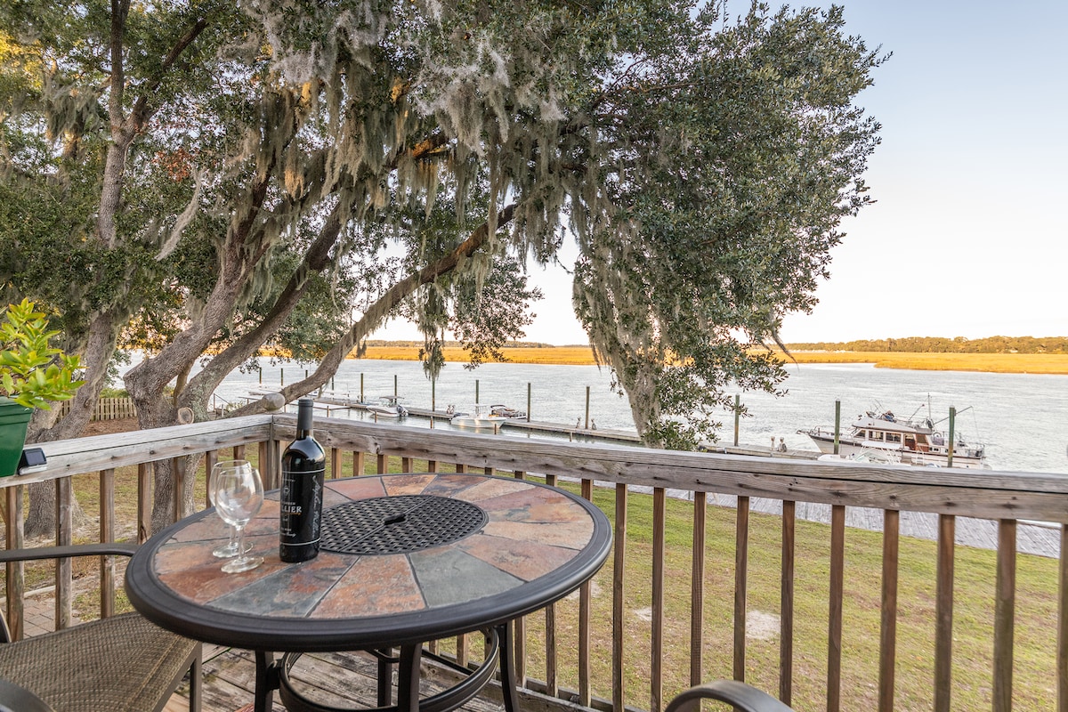 Hello to all! Welcome to this lovely completely open concept second floor 650 sq ft condo with a full unobstructed view of Deepwater Battery Creek. We have all the needed amenities for a quick getaway or long term stay. 10 minutes from downtown Beautiful Beaufort SC,shopping,dining,walking paths and tours.5 minutes to Paris Island Marine Base,within an hours drive to Hunting Island State Park,Ace Basin Tours,Hilton Head Island,Savannah and Charleston. Watch for the dolphins in Battery Creek!