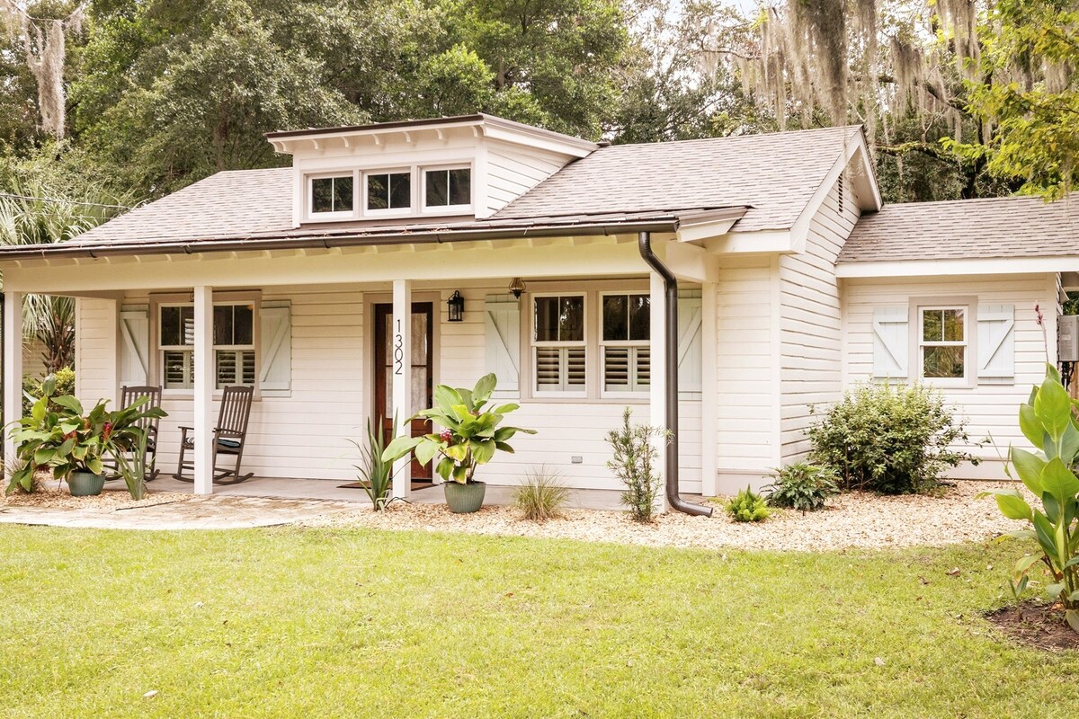 Romantic cottage on three-acres surrounded by gorgeous South Carolina waterways with endless views on all sides! Cottage is dog-friendly, has a fully-fenced front yard and screened-in porch. Full kitchen, private parking, washer & dryer, 55" TV with DirecTV. A short 10 minute drive from Hunting Island State Park, and 20 minutes to Downtown Beaufort and all the major attractions. Cottage is beautifully furnished with custom pieces to make this your ultimate low country luxury getaway!