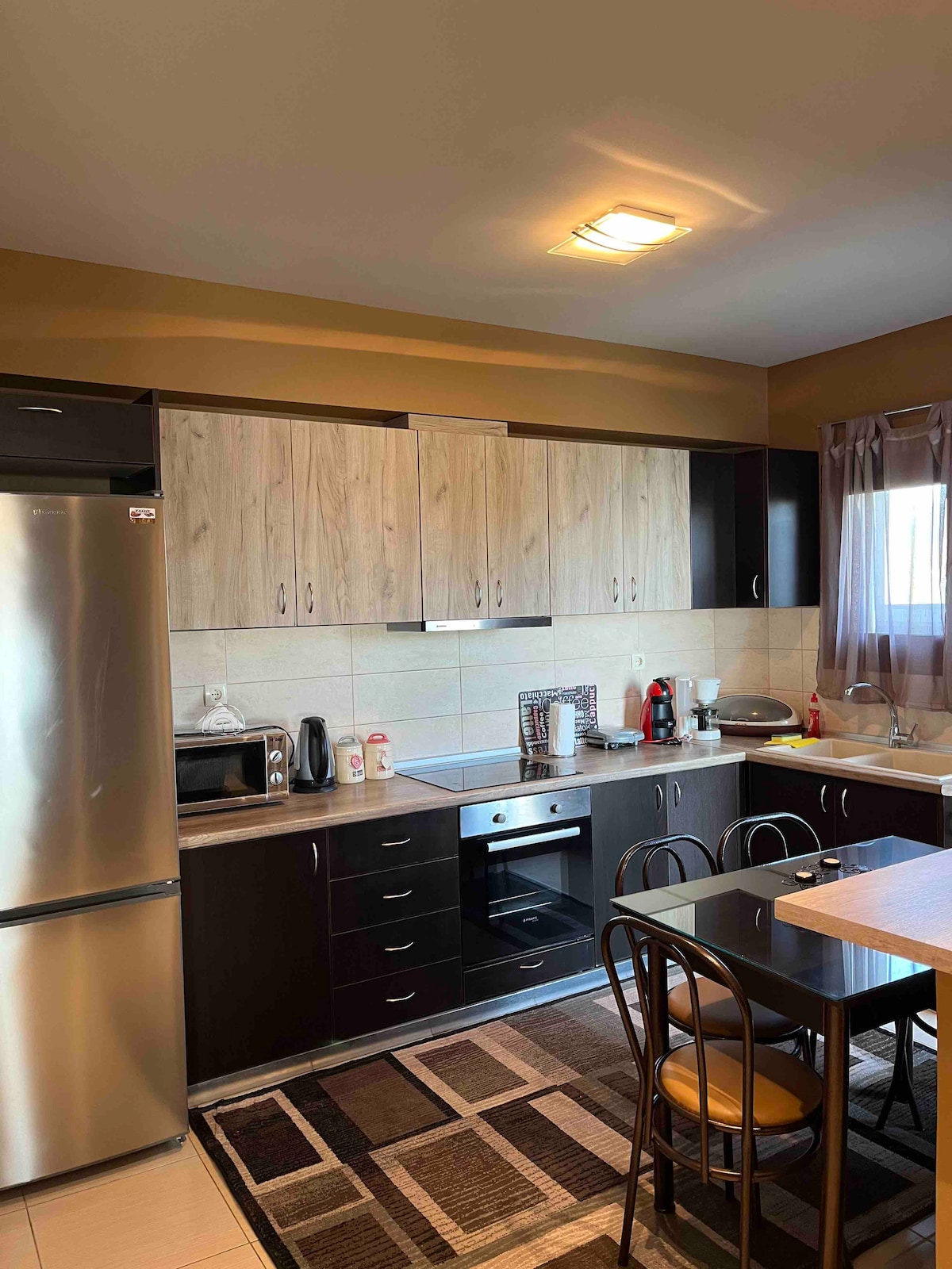 A beautiful and spacious floor apartment on the first floor of a house with a wonderful view right in front of the sea. It consists of four spacious bedrooms, a large living-dining room and a fully equipped kitchen. It is ideal for families but also for those who love the combination of mountain and sea. It is only 15 minutes from the town of Volos. And it is only a few minutes from the beautiful traditional villages of Pelion.