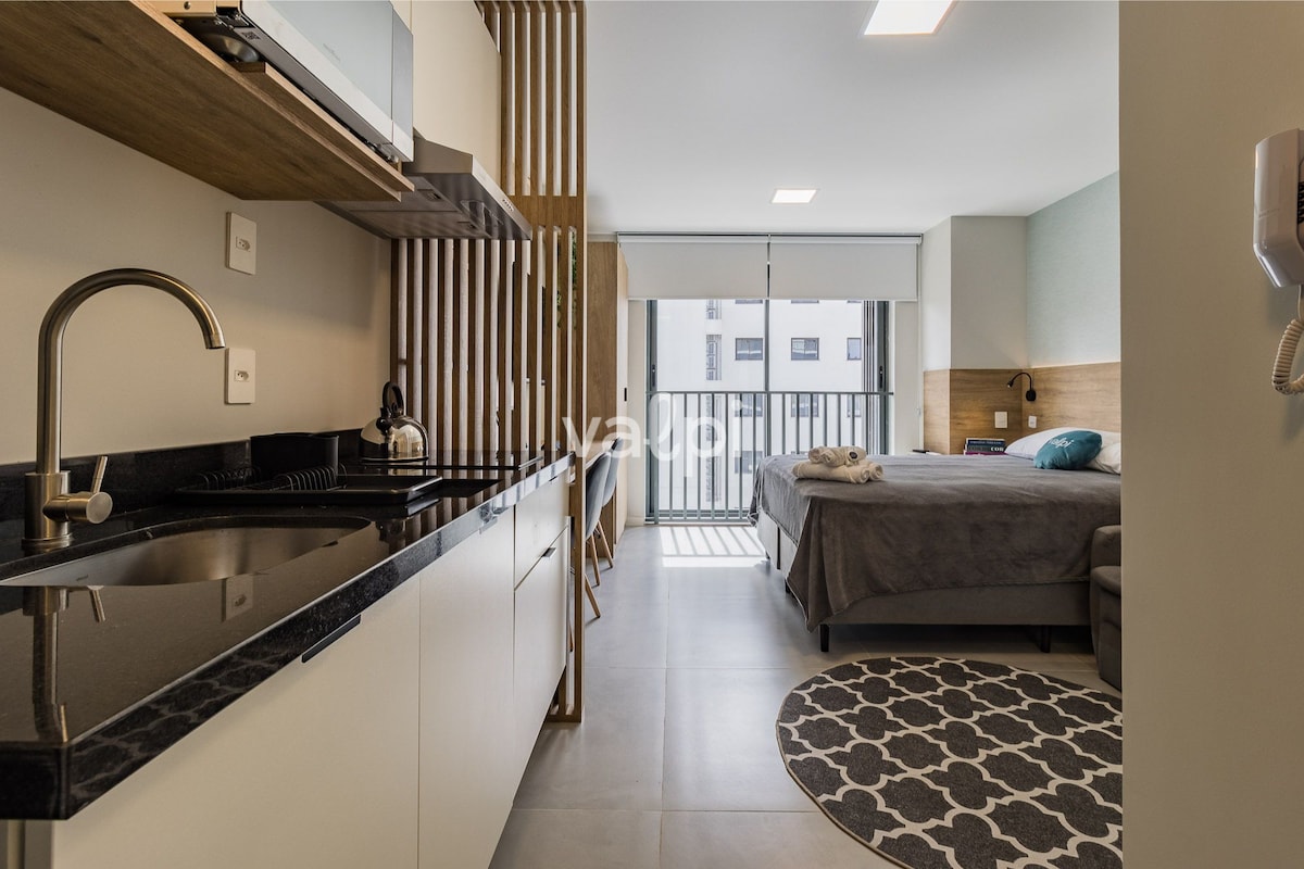 Modern and Comfortable Studio in the Heart of Porto Alegre - GO24 This cozy studio offers a complete experience of comfort and practicality, ideal for those looking for short or long-term stays in the heart of Porto Alegre. Located in a vibrant and easily accessible area, GO24 Studio features modern design, clean and functional decor. It is the perfect space for those who value style and convenience.