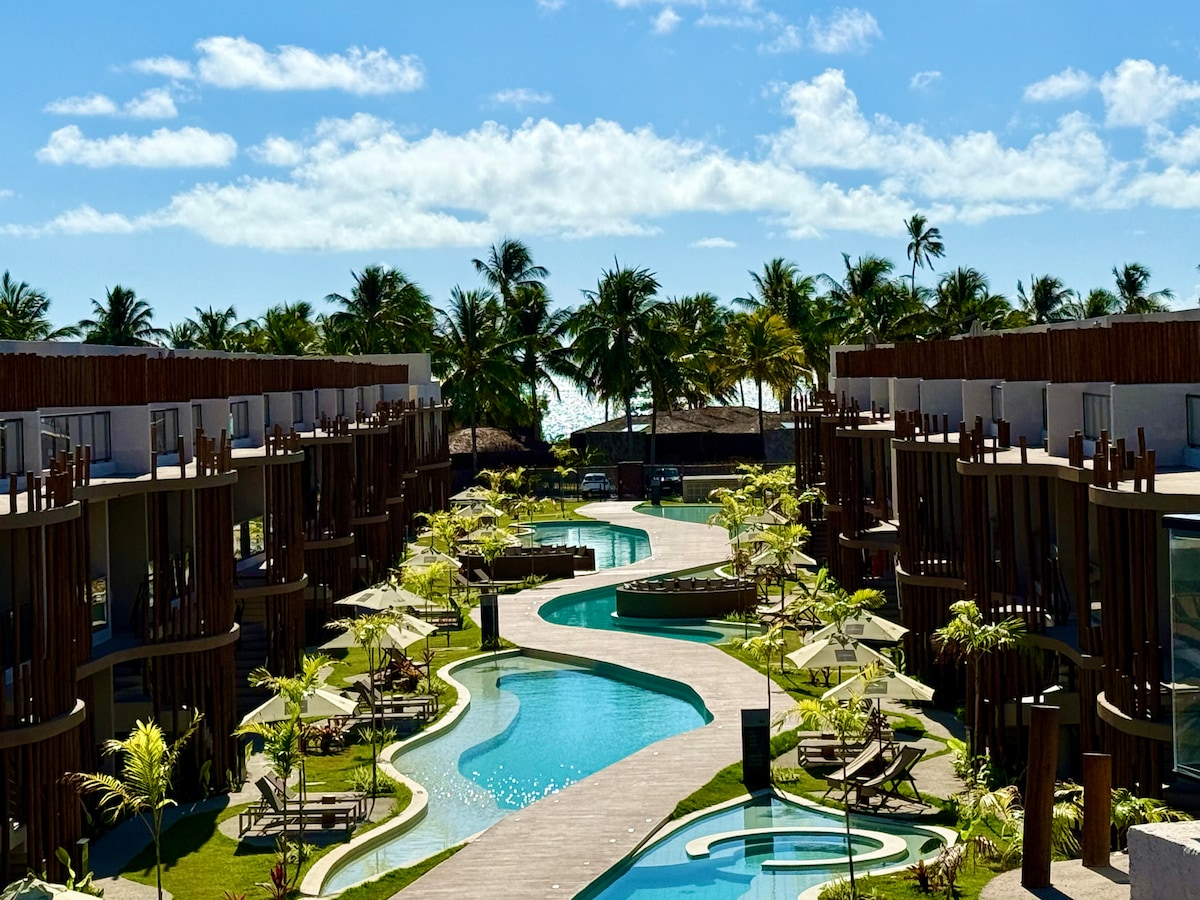 A unique experience, just steps from the most beautiful beach in Brazil. Charming, brand new space, fully equipped to provide memorable days on the Route of Miracles. Opened in October/2024, you and your family will be among the first guests to experience our paradise. 24-hour reception, fully air-conditioned loft, Smart TV, new 650-thread-count linen, gourmet balcony, adult, children's and whirlpool pools, beach kit and fun. Get your sunscreen ready and welcome!