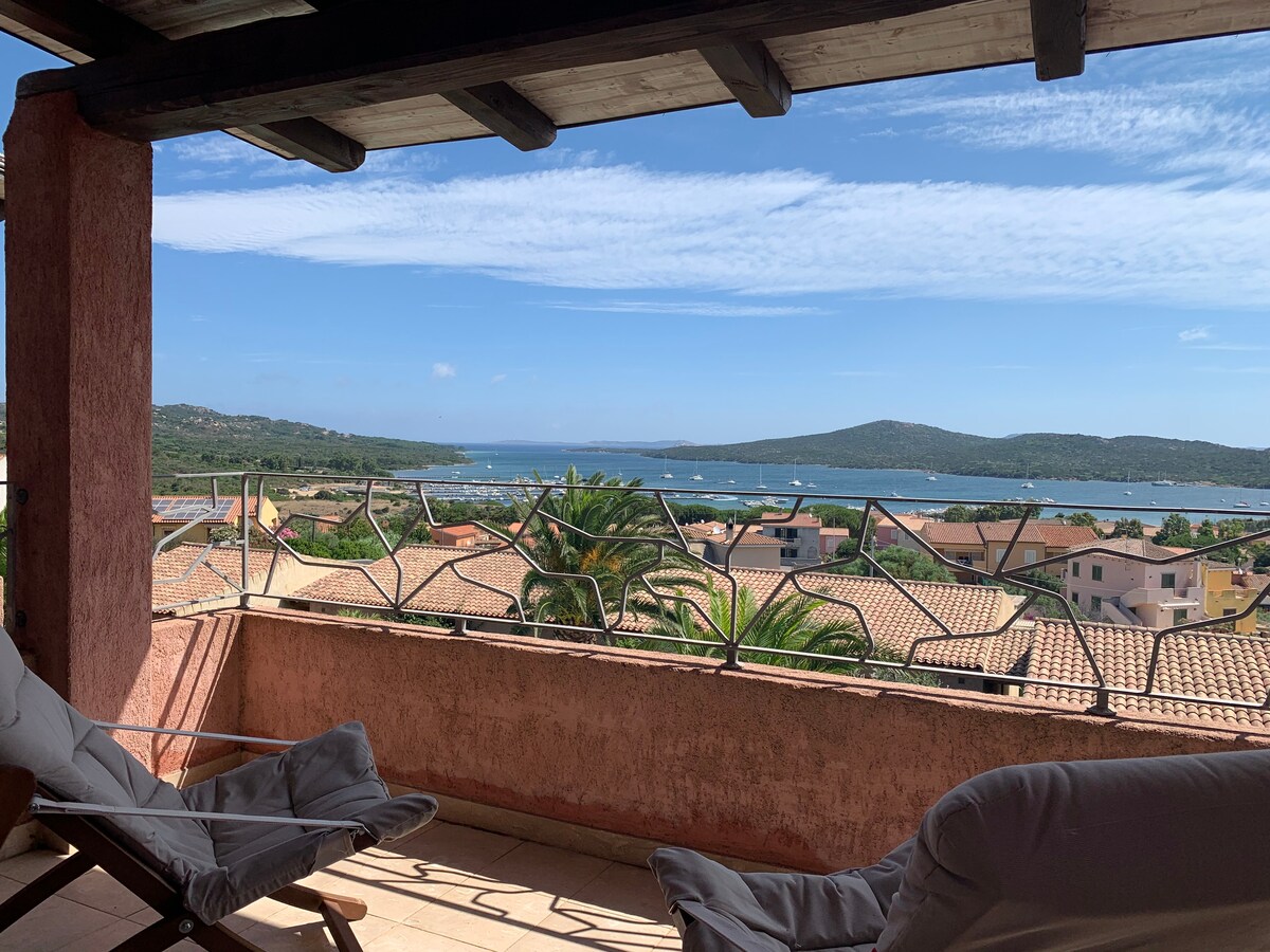 It is a bright and welcoming penthouse with a breathtaking view of the Maddalena archipelago. It is located in an elegant and quiet residence in typical Sardinian style, with a swimming pool and lots of greenery. The large covered terrace is equipped with a table, lounge and BBQ area for unforgettable dinners in total privacy and relaxation.