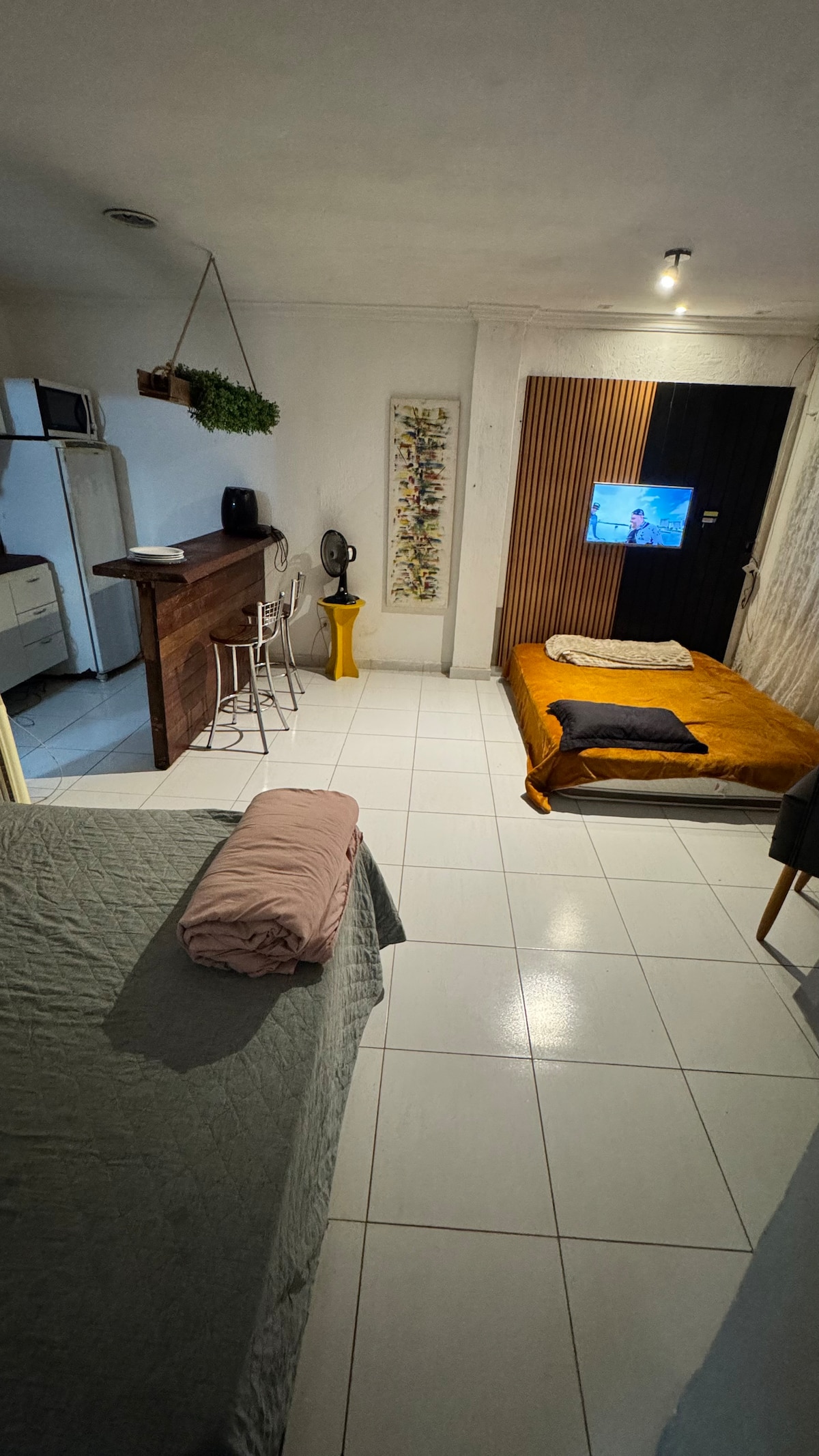 Relax in this quiet and stylish space. The Studio is situated in a great location, a quiet neighborhood 5 minutes from Porto Velho shopping, close to a park with a food court and walking track, market, bakery, beauty salon and aesthetics in front. In the Studio you will find a cozy place equipped with decorative furniture, comfortable double bed, bed, table and bath linens, kitchen with utensils, come and enjoy this great accommodation!
