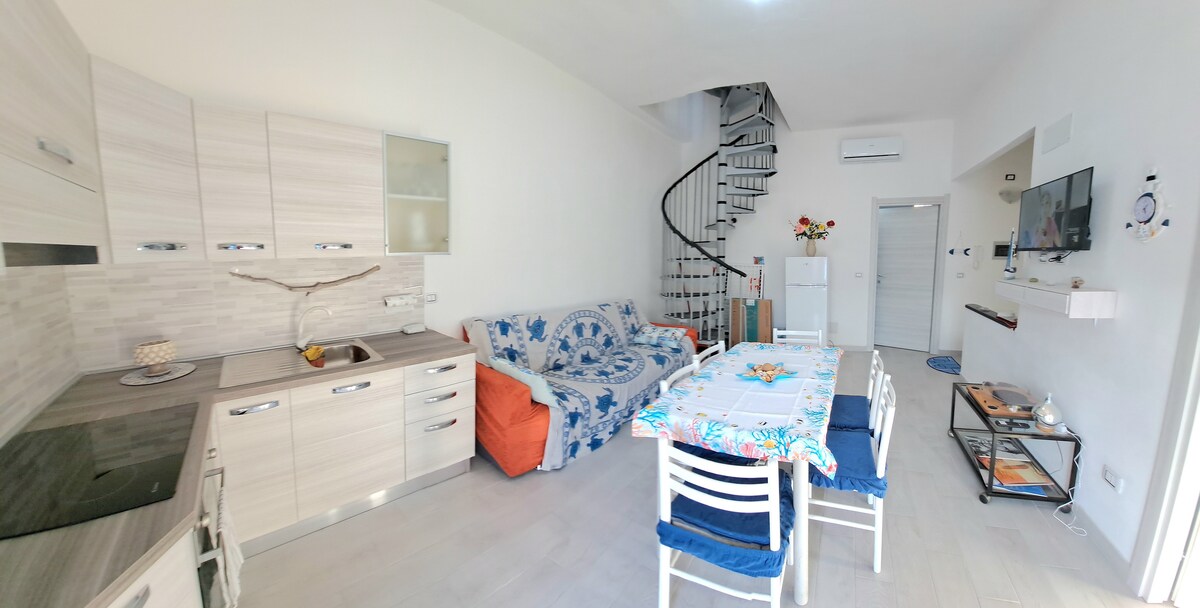 Experience the beauty of Portoscuso and South Sardinia, less than 1 hour from Cagliari airport in a cozy, newly renovated attic apartment within walking distance of Portopaglietto beach, the marina and the historic center. The apartment has a spacious double bedroom, a bright living room with full kitchen, bathroom and small terrace, closed on the sides but open to the sky, offering an airy and bright atmosphere, ideal for breakfasts and aperitifs.