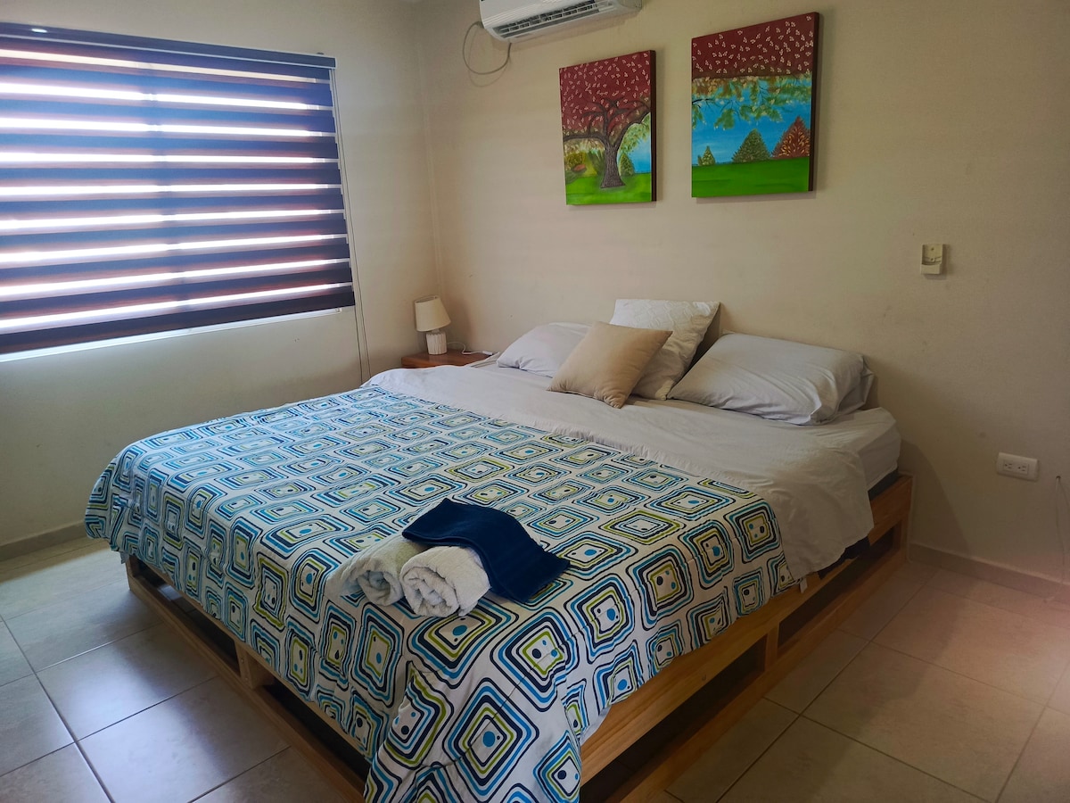 Relax in this quiet and elegant space, where a complete apartment awaits. You will enjoy numerous amenities, including a fully equipped kitchen with all the necessary utensils to prepare exquisite dishes, as well as a cozy air-conditioned room to ensure an optimal rest. In addition, you can delight with a patio full of plants, perfect for enjoying the outdoors and the serenity that nature provides