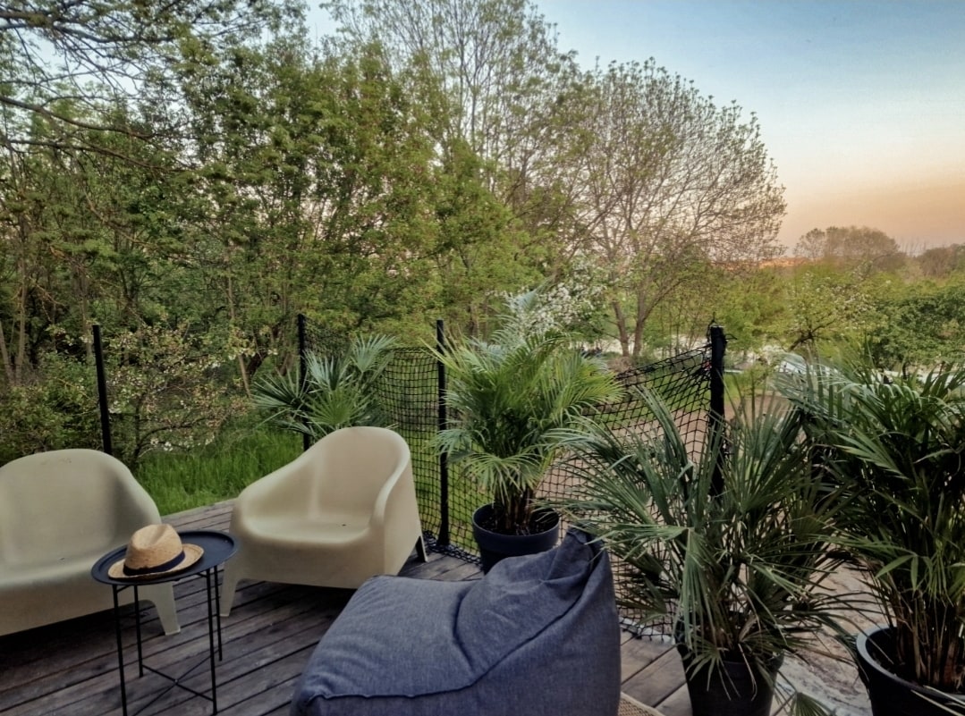 We offer a stay in a unique, green and quiet place in Poznań, right on the banks of the Warta River. There are four detached houses with terraces suspended among the greenery. A wide range of craft workshops, ceramic workshops, wicker workshops, fabric dyeing workshops, and drumming are available for guests. We offer kayaks, bicycles, and the possibility of organizing a river yacht cruise. The advantage of the location is the proximity to the city center - 5 minutes to the Old Market Square.
