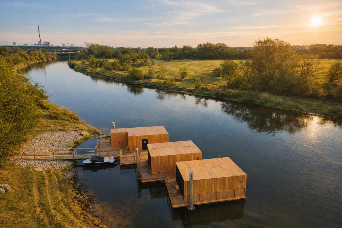 Unikalny pobyt w domu na wodzie, 10 minut od Starego Rynku w Poznaniu. Całoroczne, nowoczesne domy z tarasem, widokiem na rzekę i zieleń, zacumowane przy kameralnej marinie. Wnętrze obejmuje strefę dzienną, aneks kuchenny z płytą indukcyjną oraz łazienkę z prysznicem. Komfort przez cały rok zapewniają klimatyzacja i ogrzewanie podłogowe. Do dyspozycji gości ogród z miejscem na ognisko, kajaki, rowery, rejsy jachtem, warsztaty rzemieślnicze, hamaki, a latem bar i restauracja nad wodą. Zapraszamy