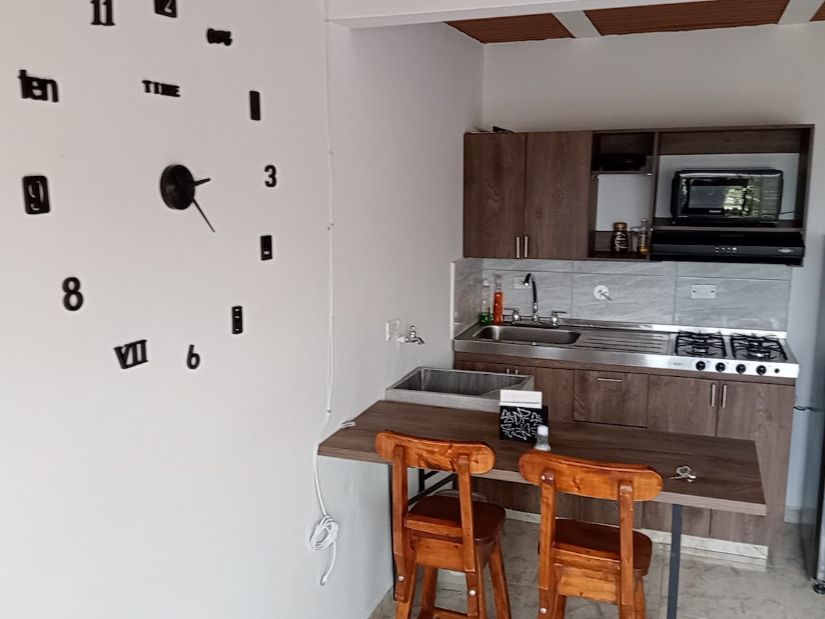 The only studio apartment (8th floor), on the terrace (7th floor) of the building, is independent, has an elevator to the 6th floor. It has surveillance, virtual doorman (you can open the building door with your cell phone) Nearby you will find museums, theaters, cultural houses, the metropolitan cathedral, hospitals, shopping arcades. Access to the Metro, Tram, Metro plus... There is also another studio apartment on the 1st floor. Three blocks away there is transportation that arrives from Rionegro airport and leaves for it.