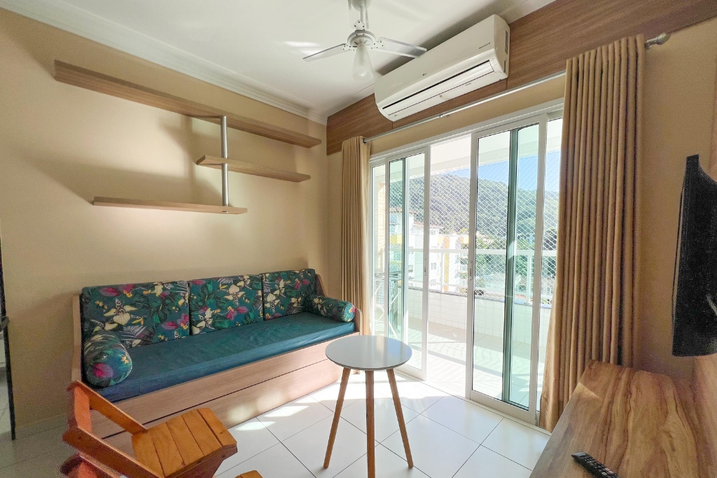 Incredible and super comfortable apartment. Located 650 meters from Lázaro Beach, 1 km from Sununga Beach, where the Gruta que Chora is located, 2.5 km from Domingas Dias Beach and just 500 meters from Saco da Ribeira Marina. Bedroom with queen-size bed, two single beds, linen included and air-conditioning. Ultra-fast Internet, 40" Smart TV in the living room and full kitchen. Condominium with swimming pool and barbecue area, which complete the best location for a perfect stay for the whole family.