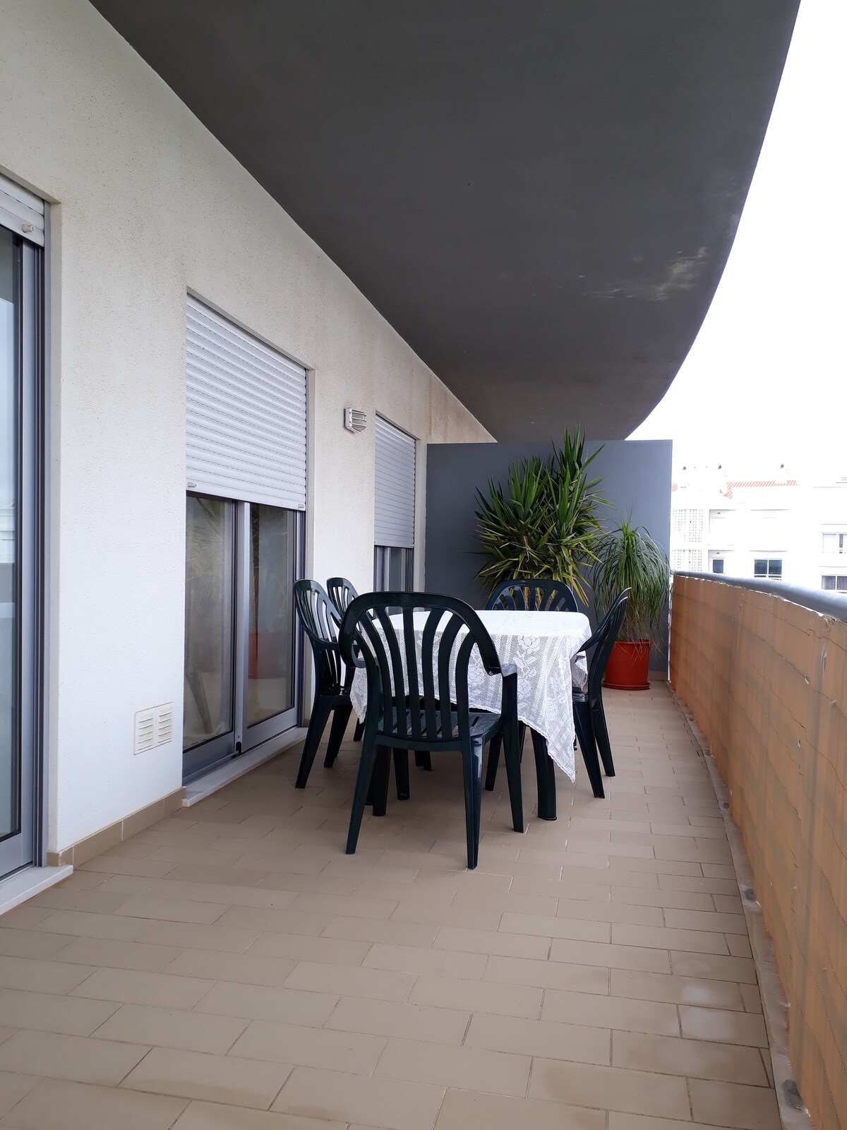 Apartamento muito bonito, localizado em condomínio 5 estrelas, 2 piscinas, campo de ténis e garagem a 650 metros da praia dos Olhos de Água. 1º andar com escadas, está bem equipado com tudo o que faz falta numa casa. Quarto com cama casal grande 160x200, sala com 2 camas de solteiro no sofá, uma em cima e outra na gaveta em baixo. Varanda voltada a poente com mesa e cadeiras.