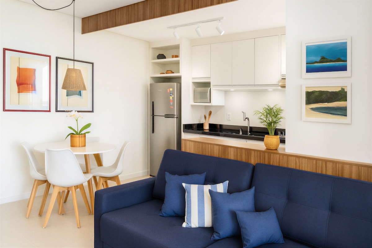 Modern and cozy🏖️ apartment just 30 meters from the sea, in the heart of Canasvieiras. Ideal for those seeking comfort, practicality and the unique experience of experiencing the most sought-after beach in Florianópolis.