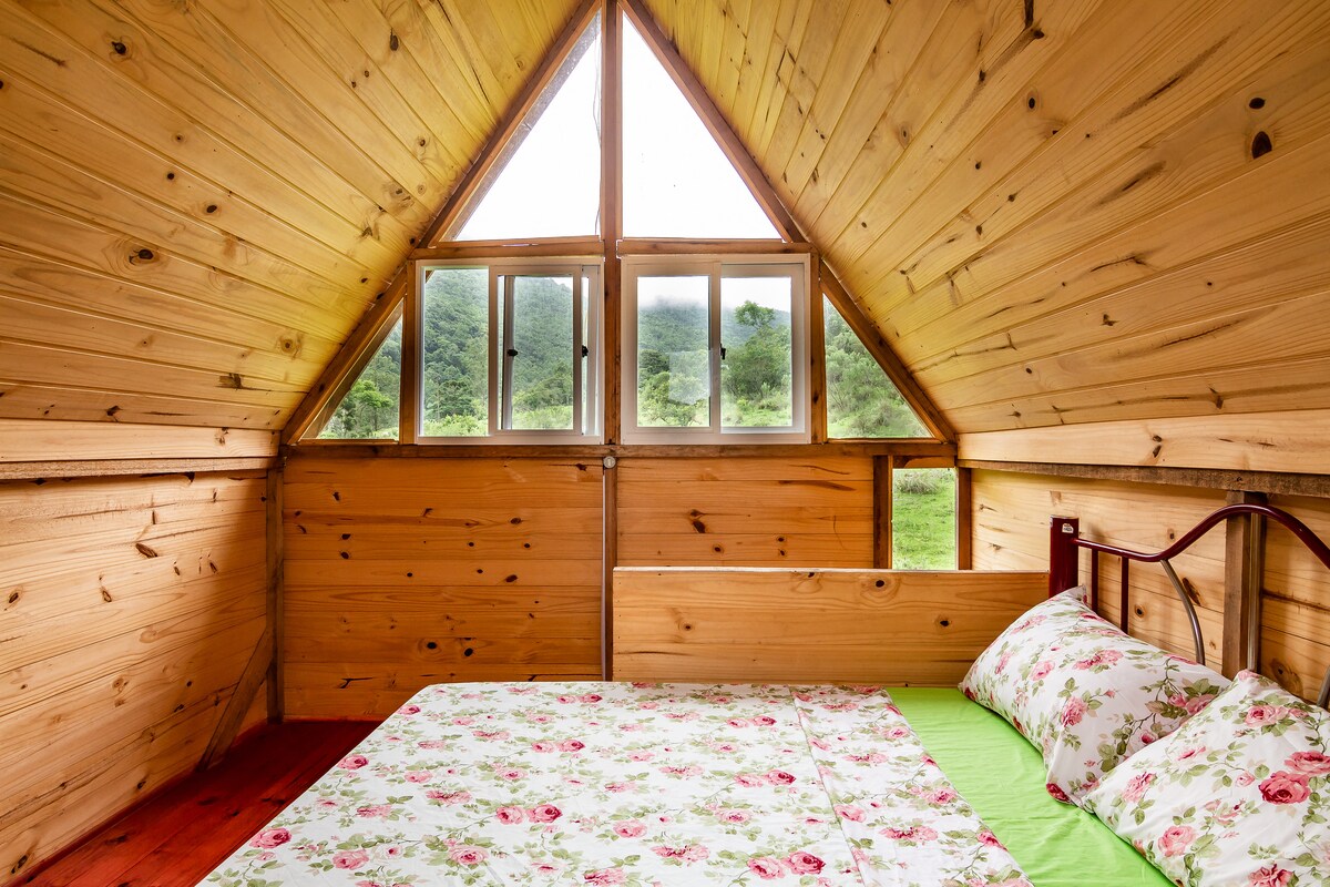 A cabana Beija-Flor é privativa e comporta até 4 pessoas. Ela possui dois quartos com vista para os morros e banheiro privativo com chuveiro. Disponibilizamos ventilador, roupa de cama e banho. Agora temos também frigobar para uso.