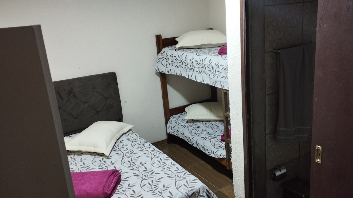 Apartamento em pousada com banheiro privativo e cozinha completa para até 6 pessoas. O apartamento conta com ventilador, roupas de cama, travesseiros, cobertores e toalhas.