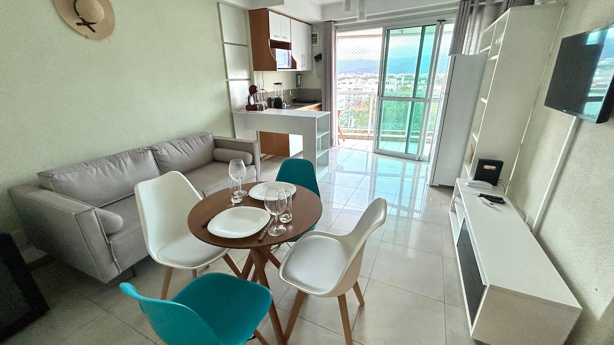 Charming 1-bedroom apartment and living room on the 2nd floor, with two balconies — 1 in the bedroom overlooking Estrada do Pontal and another in the living room with partial sea views. Fast Wi-Fi and a great little corner for those who need to work. Great for couples, families, or even those coming on business. Bed/bath linens are included. If you need a change, just arrange it (additional service). We provide chairs, beach umbrellas and beach towels. * Autonomous apartment with no business or commercial relationship with the condominium