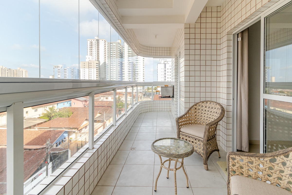 BEACHFRONT Studio in José Menino, Santos, SP. SIDE SEA VIEW. HANGING BED. CLIMBING WALL. Comfortably accommodates 2 adults (queen-size bed) and 2 children (double-size bed). :. 350-megabyte Wi-Fi :. Hot/cold air conditioning :. 32-inch Smart TV :. Electronic lock :. Kitchen (filter, refrigerator, cooktop, microwave, Nespresso machine, mixer, and pots) :. Washer/dryer :. Window screen :. Outlet protectors :. 220V voltage :. Rotating parking space, subject to availability.