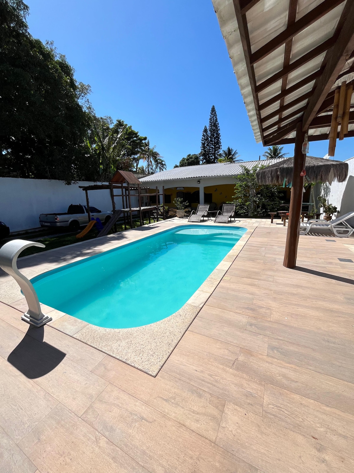 Casa Amarela, in Praia Seca, offers the ideal combination of comfort, nature and tranquility. Just a stone's throw from the lagoon and the beach, it's perfect for families, couples or groups of friends who want to relax in a cozy and safe environment. With airy spaces, an equipped kitchen, outdoor area and Wi-Fi, you'll find everything you need for an unforgettable vacation. Pet friendly, and with easy access to local markets and shops. Come and experience special moments at Casa Amarela, Praia Seca
