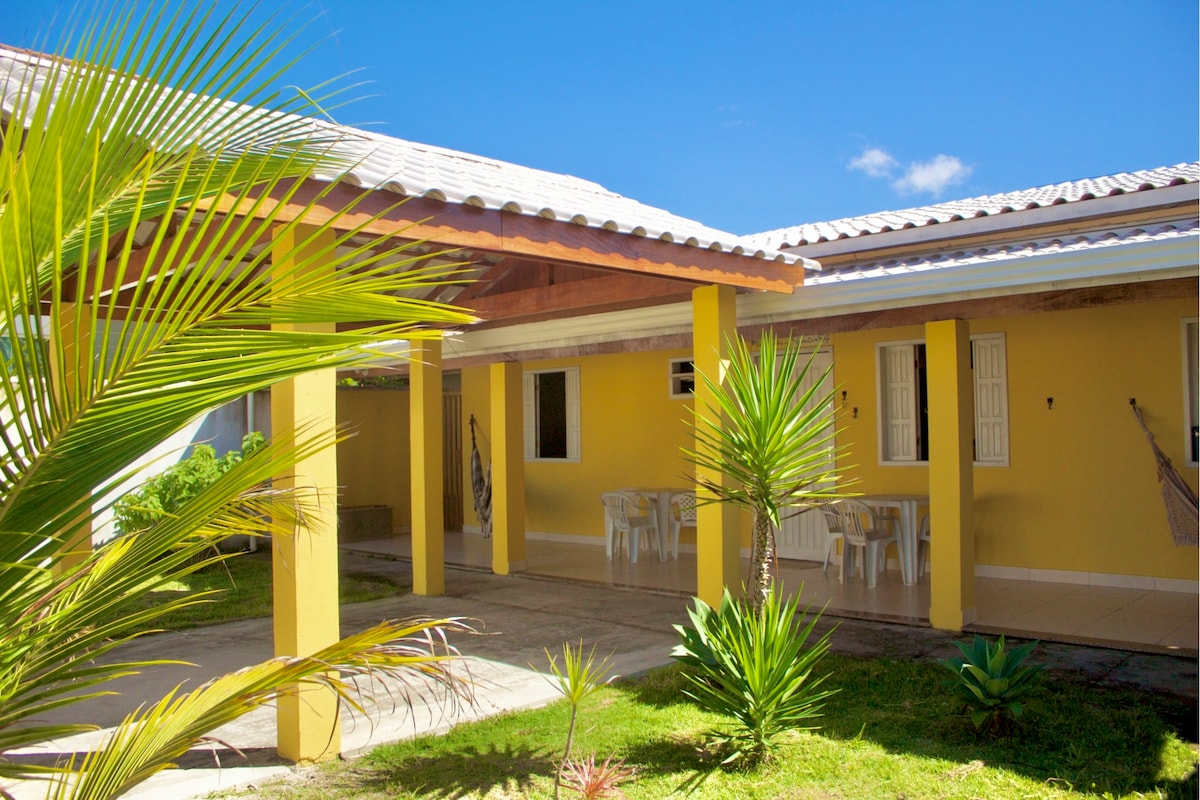 Spacious and airy house. Less than 100 meters from the beach. Kitchen with all the basic utensils to prepare your own meals. An area with hammocks and a small barbecue area. There is a space with internet access. TV with satellite dish. A backyard if you have a larger pet. Quiet neighborhood.