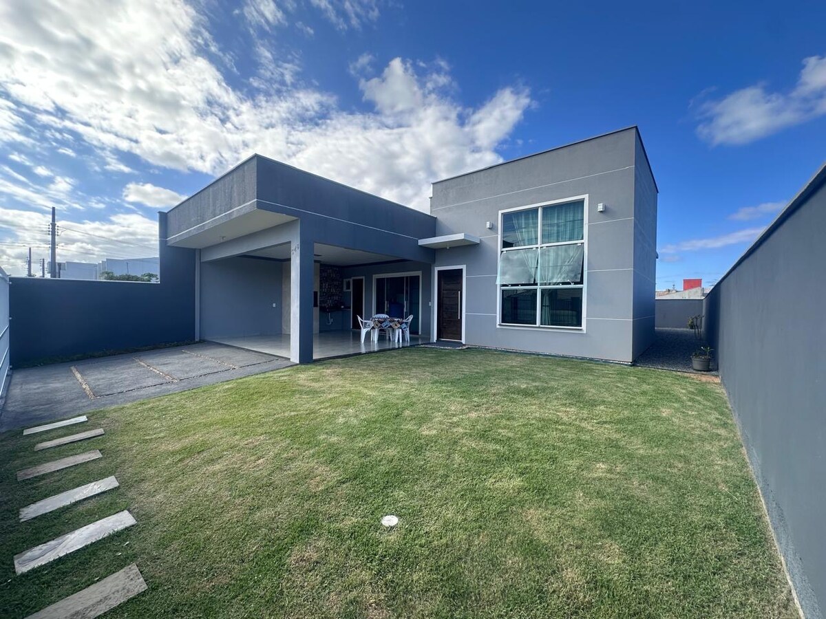 🌊 Only 40 meters from the sea! House located at Praia Grande – São Francisco do Sul, in the best area of the beach, close to Prainha, allowing you to enjoy two beaches without using the car. The house has 4 bedrooms (2 suites), plus a social bathroom, all with air conditioning. Comfortable living room with Wi-Fi, Smart TV, air conditioning, and ceiling fan. Outdoor area with pool and waterfall, barbecue area, front kiosk with hammock, garage, and beach items. 🐾 Pets are welcome with additional