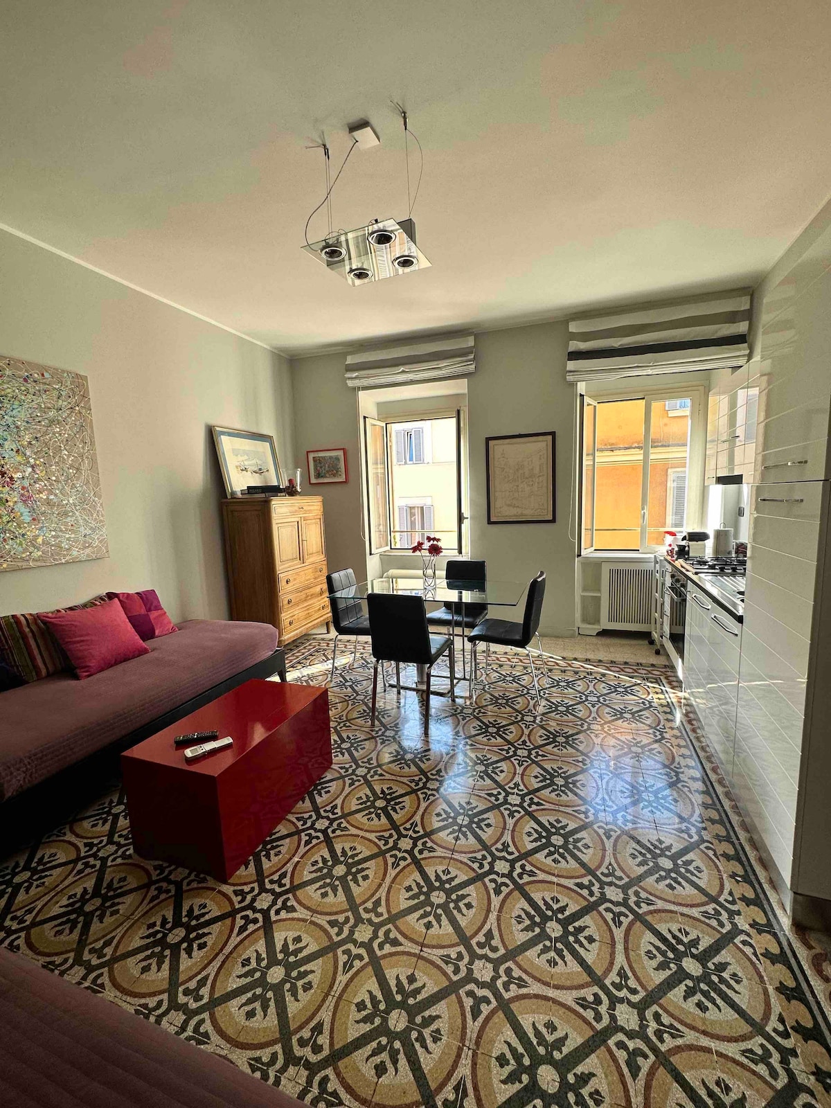 Enjoy the charm of an authentic Rome apartment! Located in the center of the eternal city, in a quiet cobblestone alley of the historical and lively Trastevere area. This recently renovated apartment combines the classic roman charm of the original roof beams with the style of furnishing. This is an ideal home to experience a great stay in the capital of Italy.