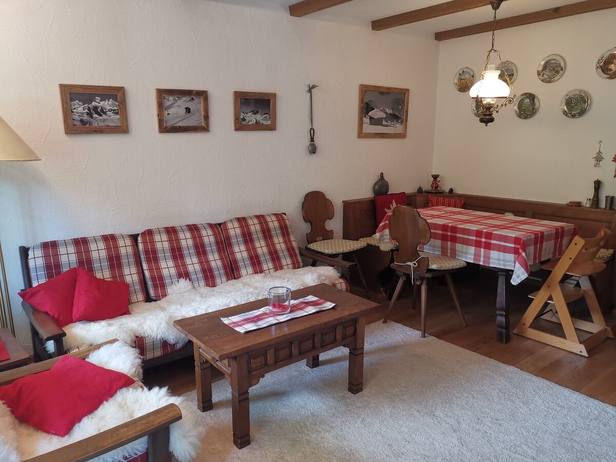 The cosy apartment with two bedrooms is very centrally located (150m to the train station and the gondola, 200m to the Coop) and offers a beautiful view of the Gotschnagrat. The apartment has 60sqm, a south-west facing balcony and an underground parking space. There is a very nice swimming pool in the house (free of charge, closed 13.4.-26.6. and 26.10.-11.12.); the sauna can be used for 10CHF/2h. There is also a ski cellar, a table tennis room and a laundry room.