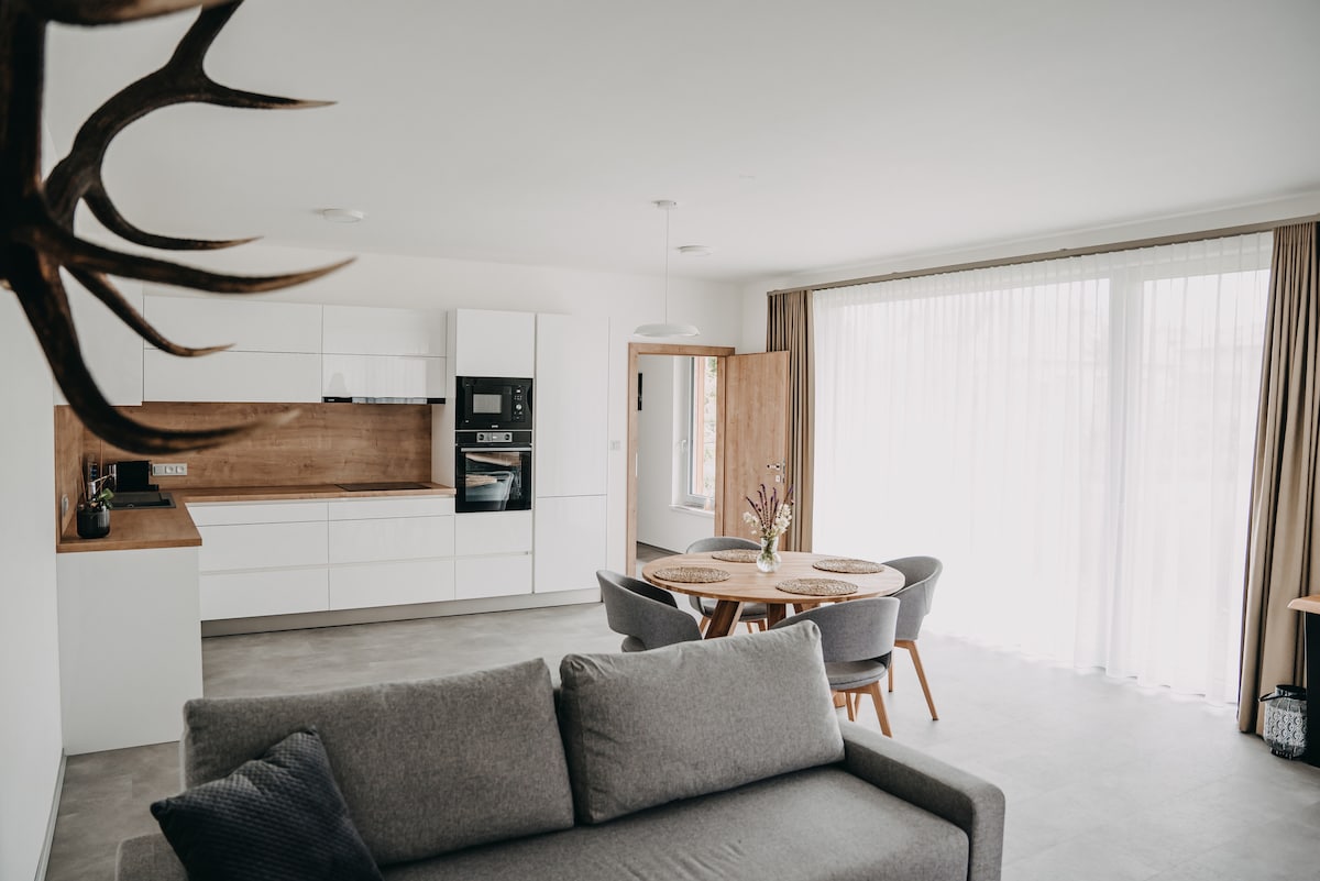 Toto jedinečné ubytování nabízí stylový design inspirovaný minimalismem a zároveň maximální pohodlí. Vysoké stropy, klimatizace a žaluzie vytvářejí příjemné a vzdušné prostředí pro odpočinek. Byt se nachází v klidné části Olomouce u řeky Moravy, přesto jen pár minut od historického centra. Soukromá zahrádka a kvalitní vybavení, místo televize projektor , podtrhují důraz na klid, soustředění a skutečný relax.