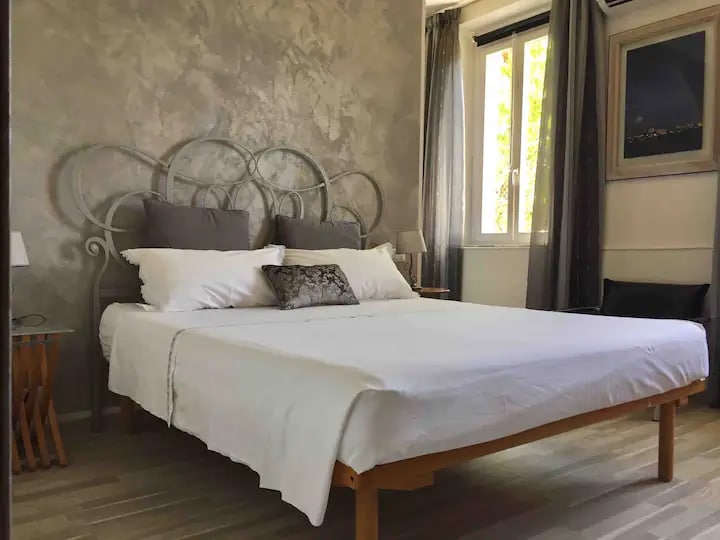 Decorated with vintage furniture and offering breath-taking views of the Tuscan Countryside, Suite Le Camelie offers a truly relaxing retreat. Lounge outside in the beautiful gardens and end the day with a bath in the tiled bathroom. Villa Caprera is part of a little village located at the end of a local road. Gardens, yards, olive orchards and fields surround the place where old ladies sit outside the door for chatting and knitting. Suite Le Camelie occupies part of the first floor; thank to the difference in level between the two sides of the villa, the entrance to Suite Le Camelie is comfortably located on the ground floor. Decorated with vintage furniture and modern linens and accessories, feels sophisticated and elegant. Very quiet and with an amazing view. Ideal for a romantic trip. The gardens and yards surrounding the villa are free to access for our guests with the exception of a small private family area reserved for ourselves. Outdoor spaces are not gated or fenced and are shared with other two accommodations; private dining zones are dedicated to each property. My family loves holding conversation with our guests and we are available for any need but we also leave them space to enjoy their time with no interference. The home is in a very traditional area full of family-owned bistros and exquisite boutique shops. Walk through the stunning scenery to visit the church and explore the history of the ancient monastery nearby. Bus stop ten minutes on foot; the bus take you to the city centre. You can get anywhere from there by bus or train. Busses run according to a time table - average every hour. Last run approx 20.00. The road to Siena is not safe to walk. Taxis available to and from the city; very short ride so it is affordable. I recommend a car if you like to get lost in the countryside, but get a driver when you go for winery tours. Private free car park on premises approx 80m from door. The car park is not supervised or gated. Private free car park on premises approx 80m from door so you can enjoy the yards with no parked cars around. The car park is part of our premises but is not supervised or gated; garage available for a fee. We can arrange extra cleaning, cooking lessons or a cook at the house if requested. Cot available on request.
