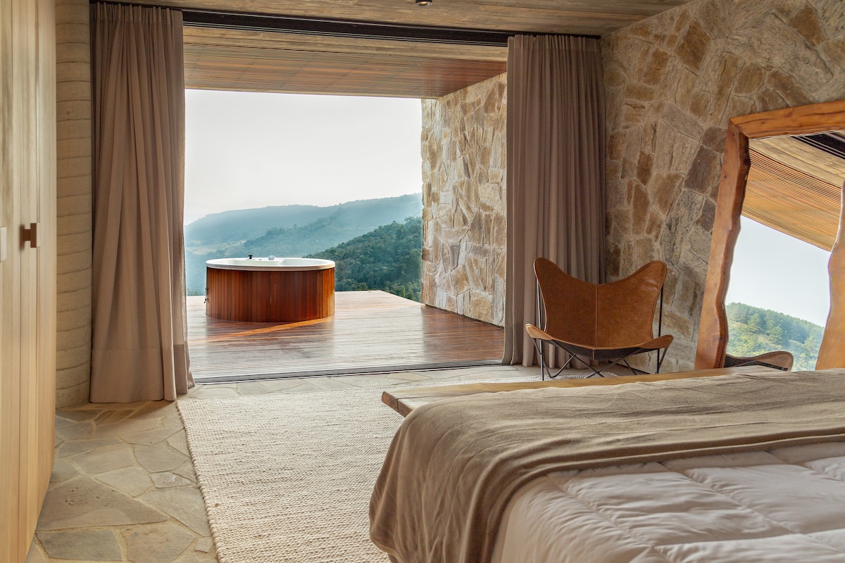 Hot tub, fire pit, hammock and a breathtaking view! The Chalé Áurea is located in a charming little town, designed to relax and renew your energies. Ideal for couples, it's the perfect getaway for special moments and to surprise those you love! We are only 3 km from the market, pharmacy and bakery. Self check-in with key safe ensures convenience and privacy. We will be very happy to welcome you!