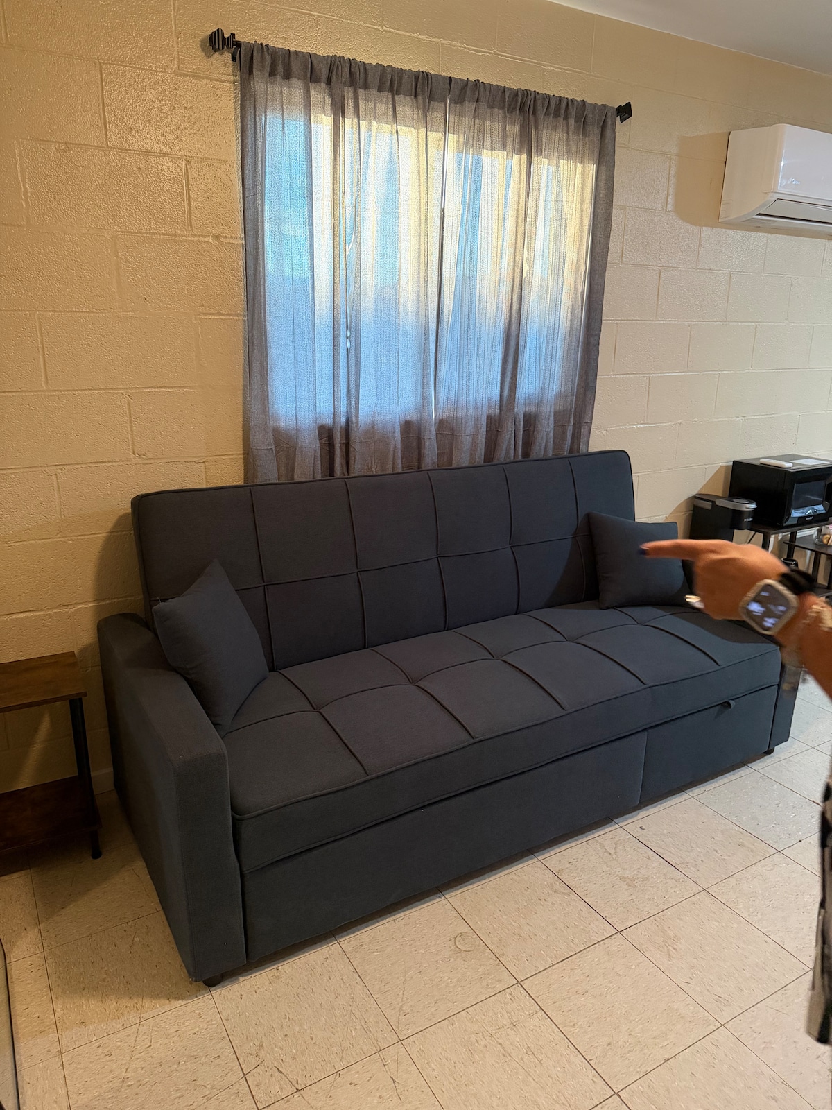In the heart of Marfa and within walking distance to the St. George Hotel, The Chianti Foundation, Main Street with several restaurants, shops and bars. This one bedroom apartment features a queen size bed in the one bedroom and a twin bed in living room. The kitchen has a refrigerator, stove, oven, and coffee maker. Brand new central air and heat. Guest pool access and bike rental is available at the Thunderbird Hotel at 10.00 a day per person or 25.00 a week.
